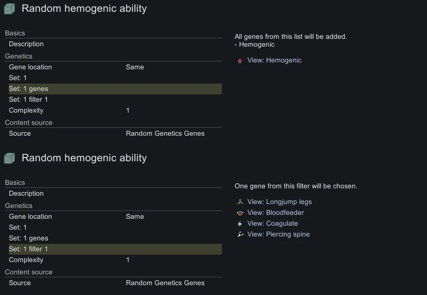 [*] Compatible with Cherry Picker. if you remove a gene that is added through this, it will not be added to your pawn.