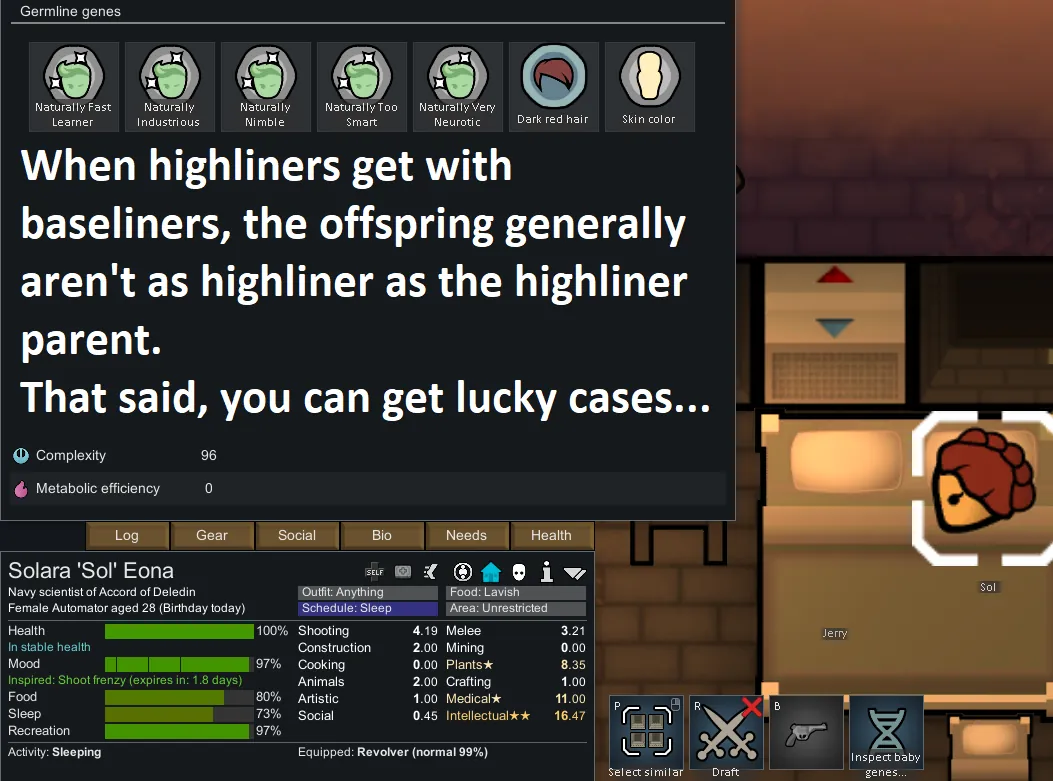Germline highliner populations are usually the products of eugenics programs intended to make highly productive workers, though natural selection sometimes has a hand on worlds where being skilled and productive are necessary to survival, but mental stability less so.