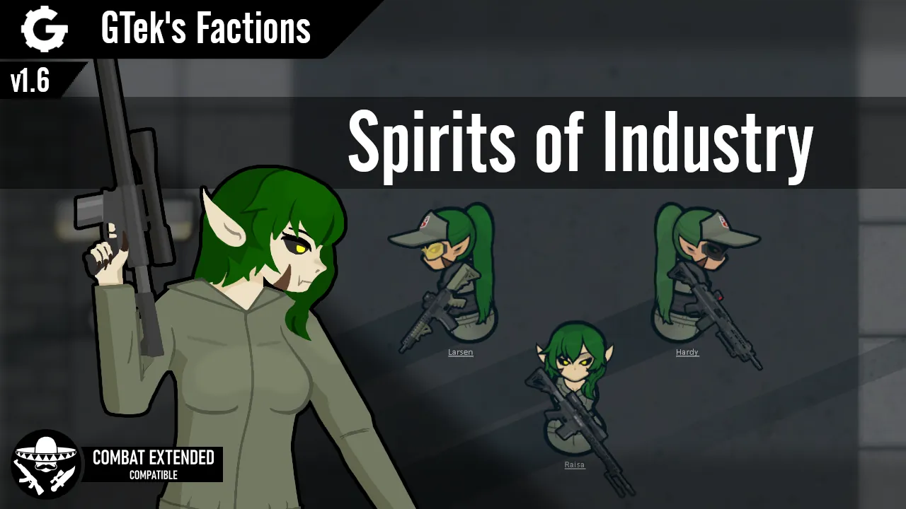 - [url=https://steamcommunity.com/sharedfiles/filedetails/?id=2798914758] Combat Extended Armors[/url] for the jumpsuit apparel textures (used under license)