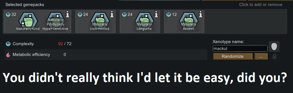Either Jimothy's Genes or Jimothy's Complexity Trait Genes is needed for genes to appear. Otherwise these are just baseliners with a layer of "trust me bro they're so zen."