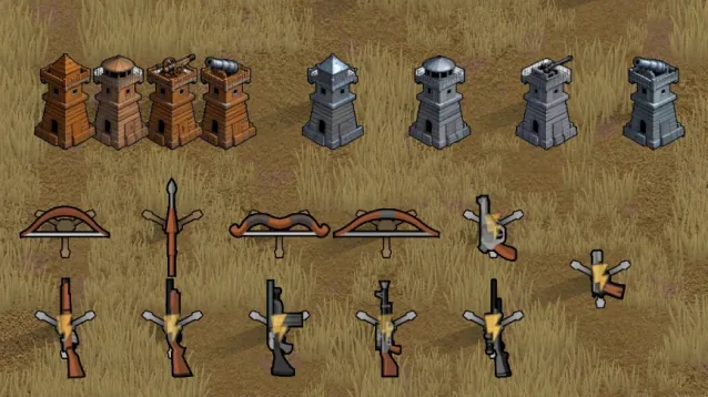 - 钢铁塔(需对应科技):自动手枪塔、泵动霰弹枪塔、链式霰弹枪塔、栓动步枪塔、狙击步枪塔,还原原版中高阶武器性能,可部署于防御塔射击盲区或前沿阵地,增强整体防御密度。