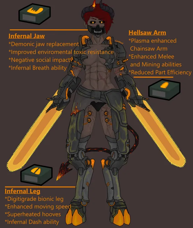 [*] Base range: 10 (Scales with amount of Infernal Legs installed)