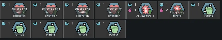 And, also, check out my other gene mods. This mod includes some of those, so if you just want something specific it may have its own mod.