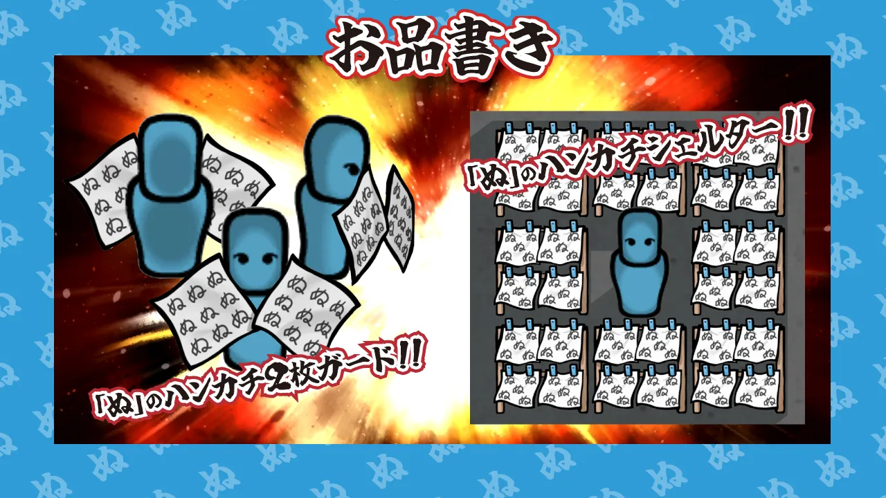 ・「ぬ」のハンカチ2枚ガード!!