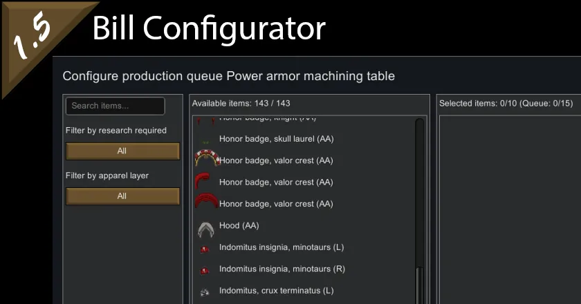 1. Bill Configurator updated - now it has loadout configurator that supports you to see the preview or items per body parts selection.