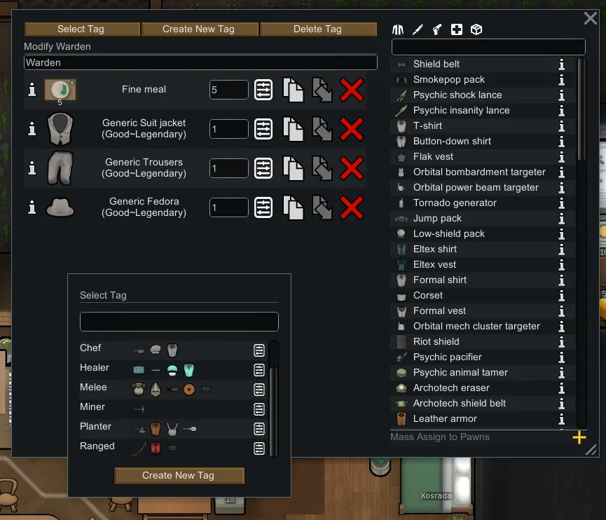 - Create tags containing items which a pawn will wear / pick up / equip automatically