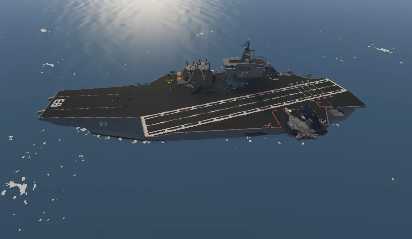 Carrier is roughly 300 blocks long, requiring a modded workbench or Mission Editor to spawn.