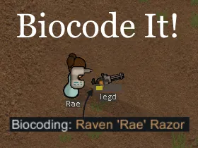 Porting this mod to 1.5 got me into Rimworld-modding! I just wanted this mod so bad in my game. The main appeal of using it for me is by the way not theft, but colony whealth concerns. It's amazing to be able to just biocode expensive guns and armor to bring down colony value. It is also totally immersive for me, because of course raiders wouldn't come steal our stuff because they know we biocode the best things.