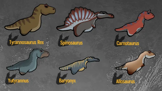 32 new species of dinosaurs are introduced through this mod, all of which spawn in various different biomes: