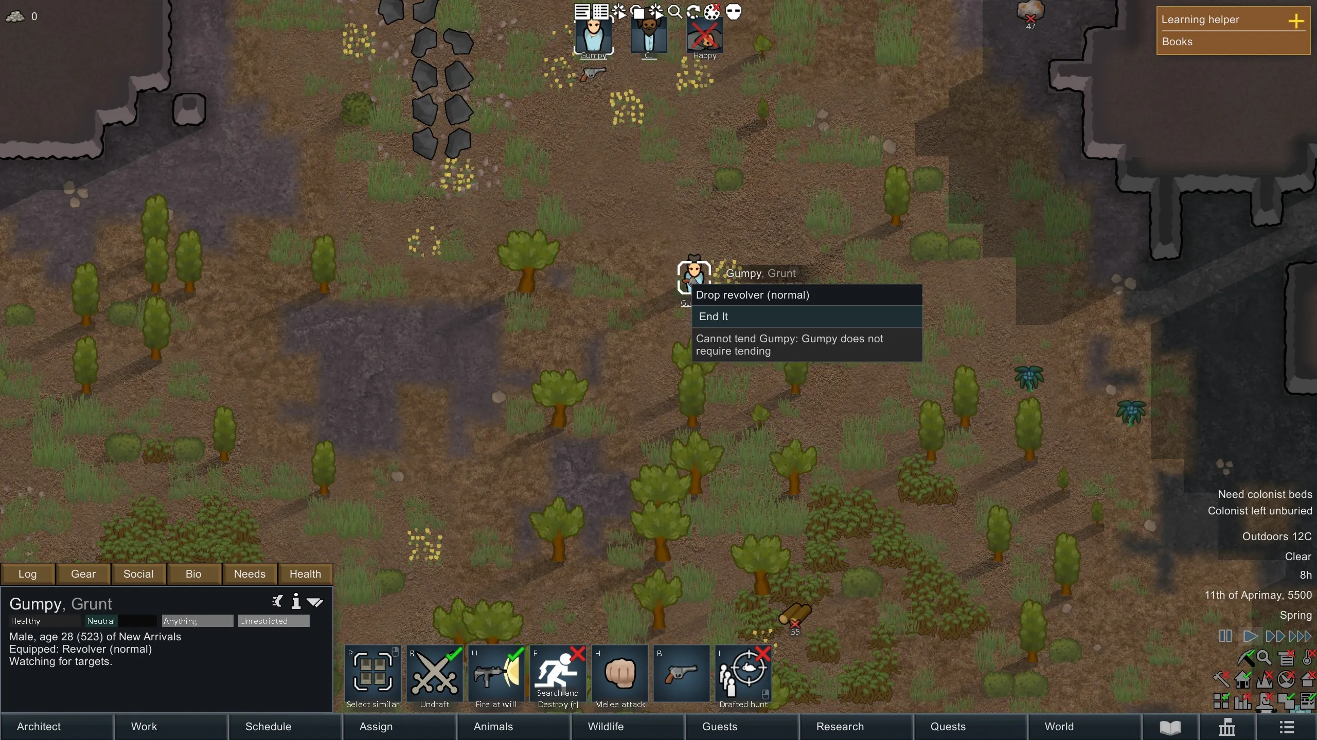 🔹 Right-Click Option – If a colonist is holding a weapon, you can right-click them and choose to End It for them, letting them take their own life.