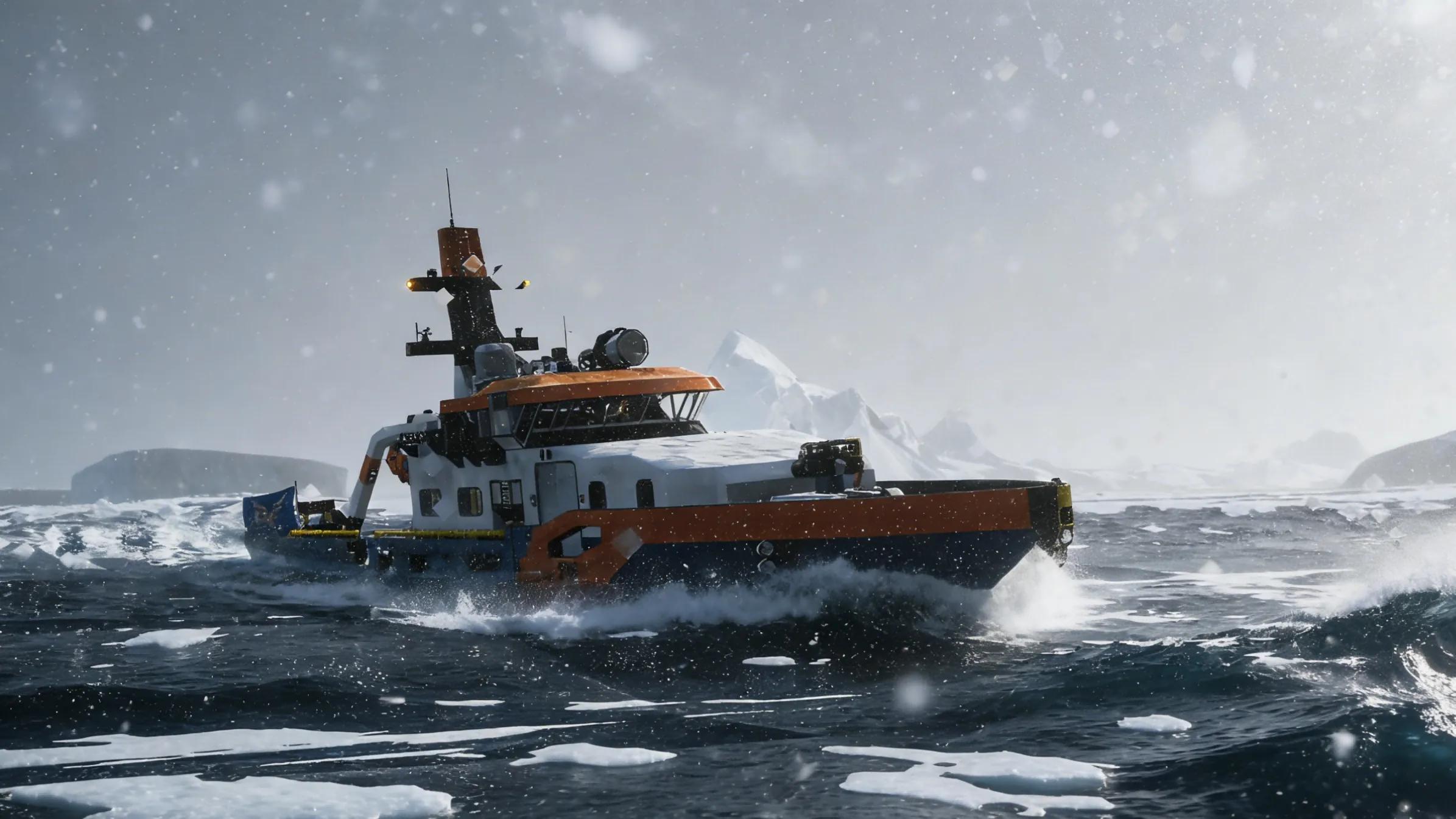 Can operate a fire water cannon and a set of cranes (for underwater salvage).