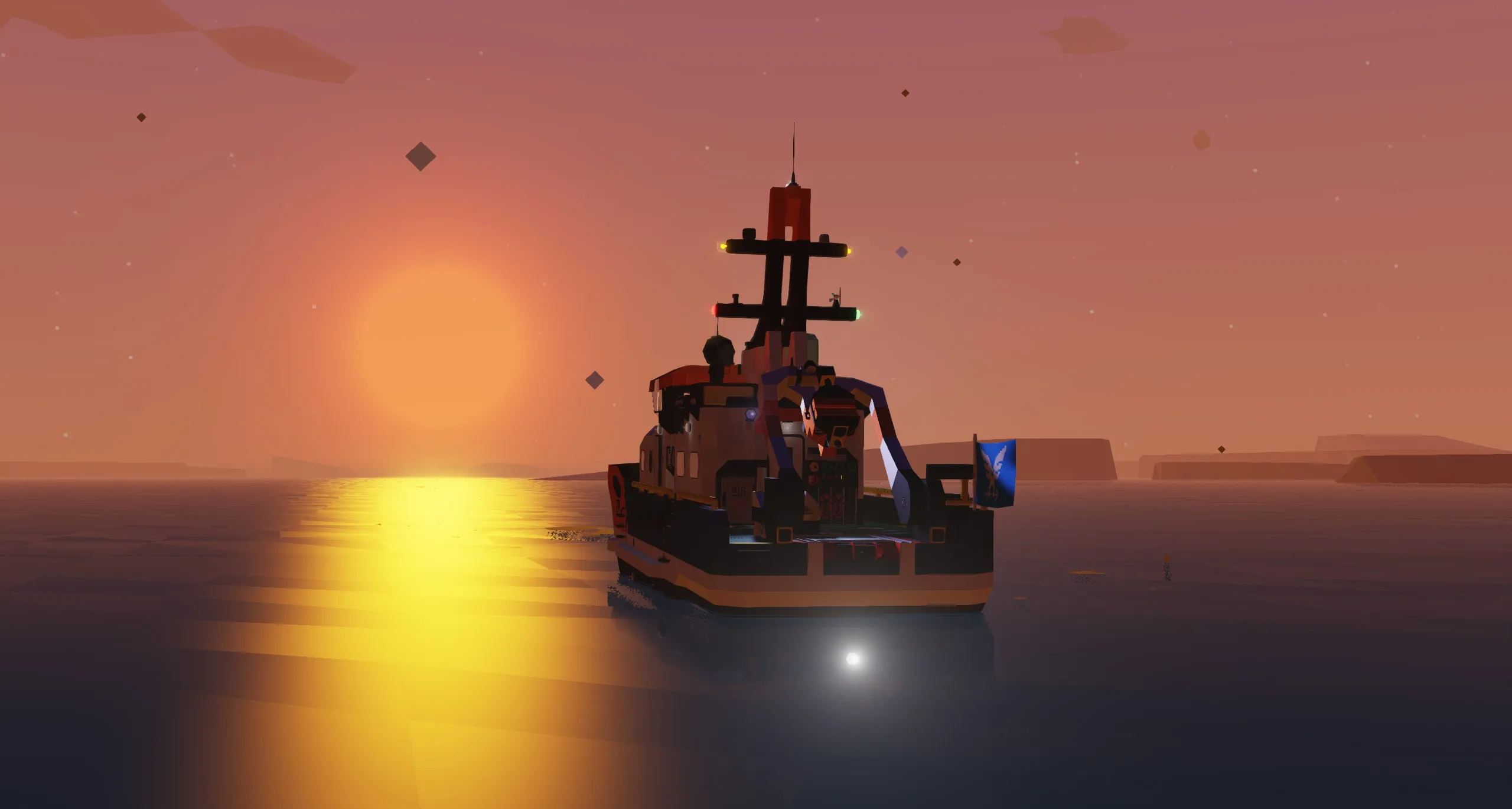 这艘船有一个2AT动力系统。发动机功率设定了额定的4个数值由上/下按钮控制,螺旋桨桨距由W/S按钮控制。一个可以超控的发电系统。