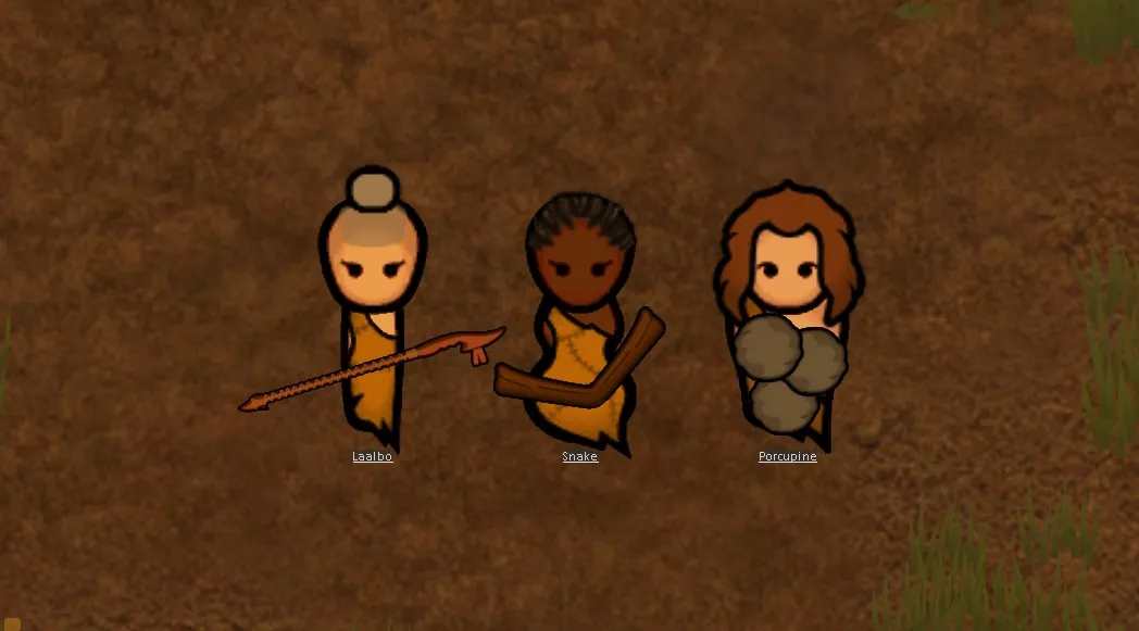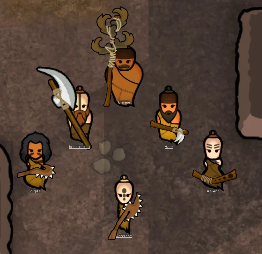 -[b]Thrumbo Chopper⁵, Rabbit Stick, Tooth Club, Tooth Axe, Fang Club³, Sugliin⁴/⁵, Bone Spear¹, Bamboo Spear², and Bamboo-Bone Spear¹/².[/b]