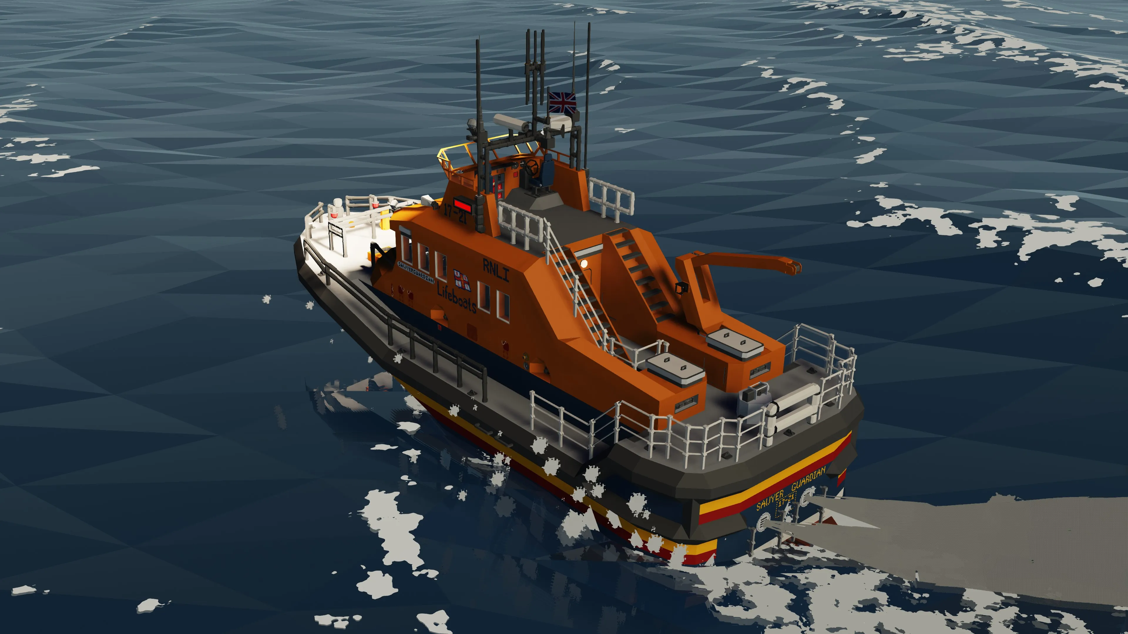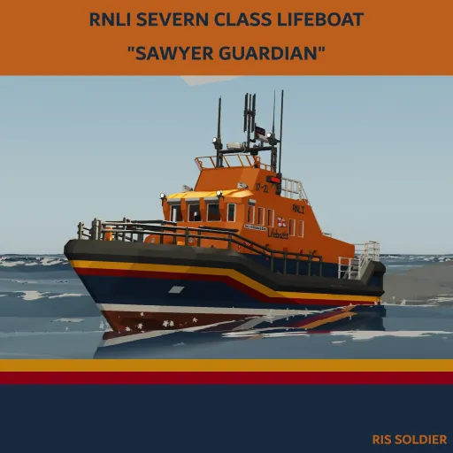 The Sawyer Guardian is a Severn Class Lifeboat, meticulously designed for the toughest rescue operations across the unpredictable waters of the Sawyer Islands. Inspired by the legendary RNLI fleet, this vessel combines rugged reliability with advanced technology, ensuring it performs in even the harshest maritime environments.