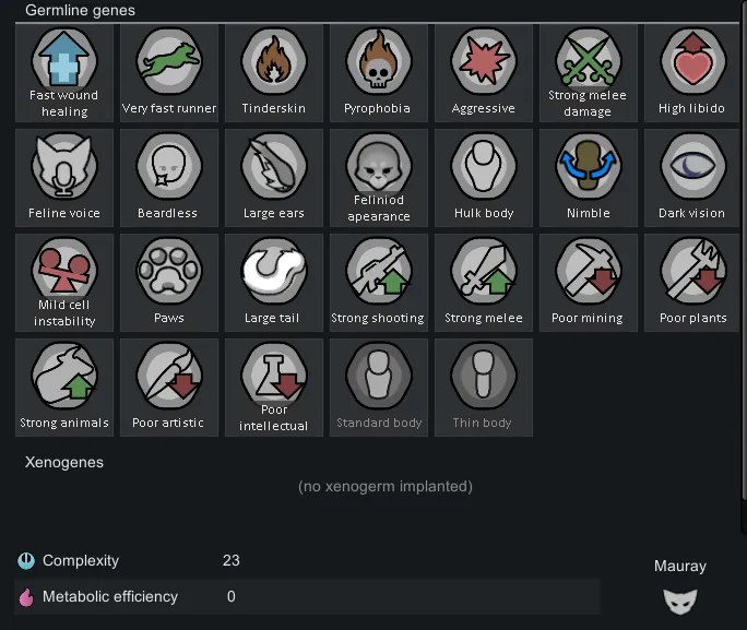 Adds feline / cat like xenotype with some unique genes and couple neolithic factions associated with them.