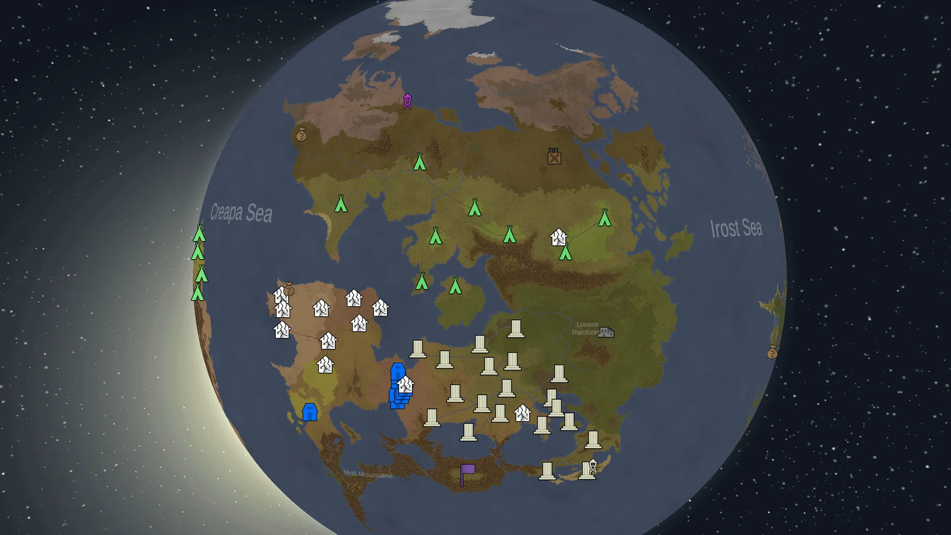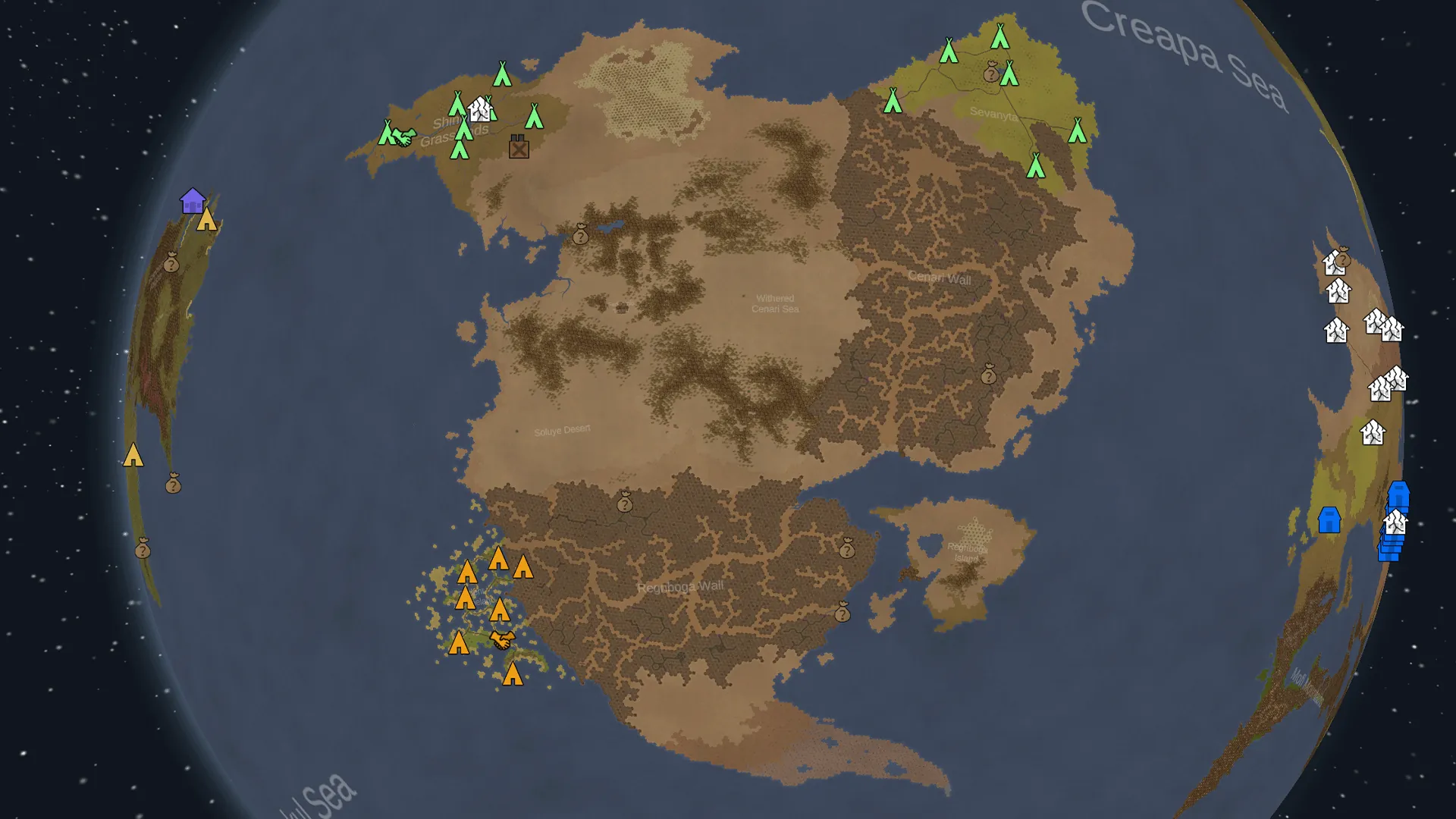 - Any mods adding more biomes or factions will likely not work properly since everything on the world map is fixed.