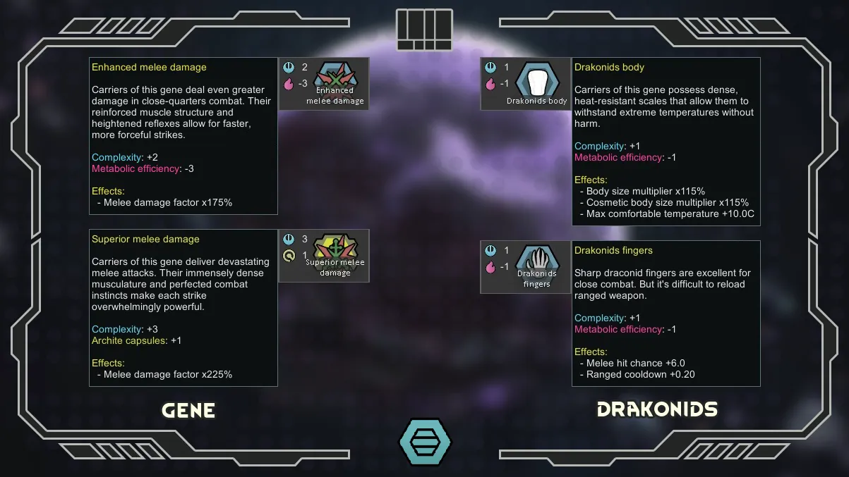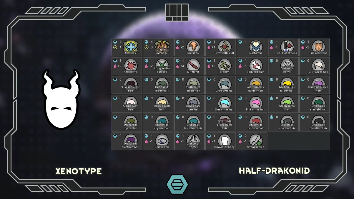 The main innovation of the mod is the Drakonids xenotypes, from the planet Obsidia.