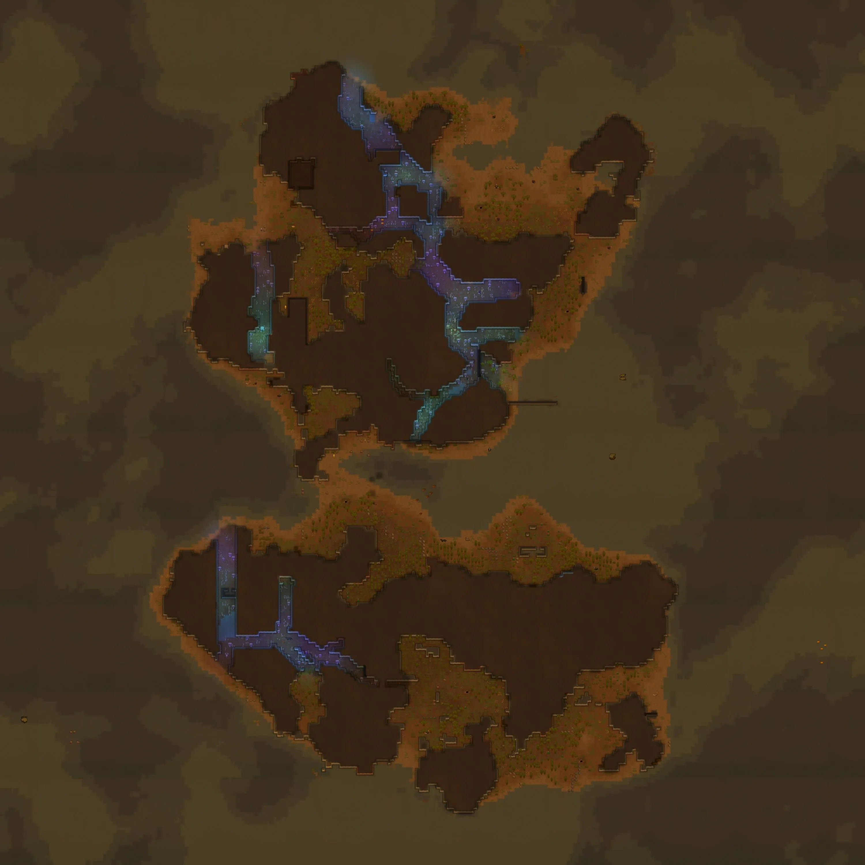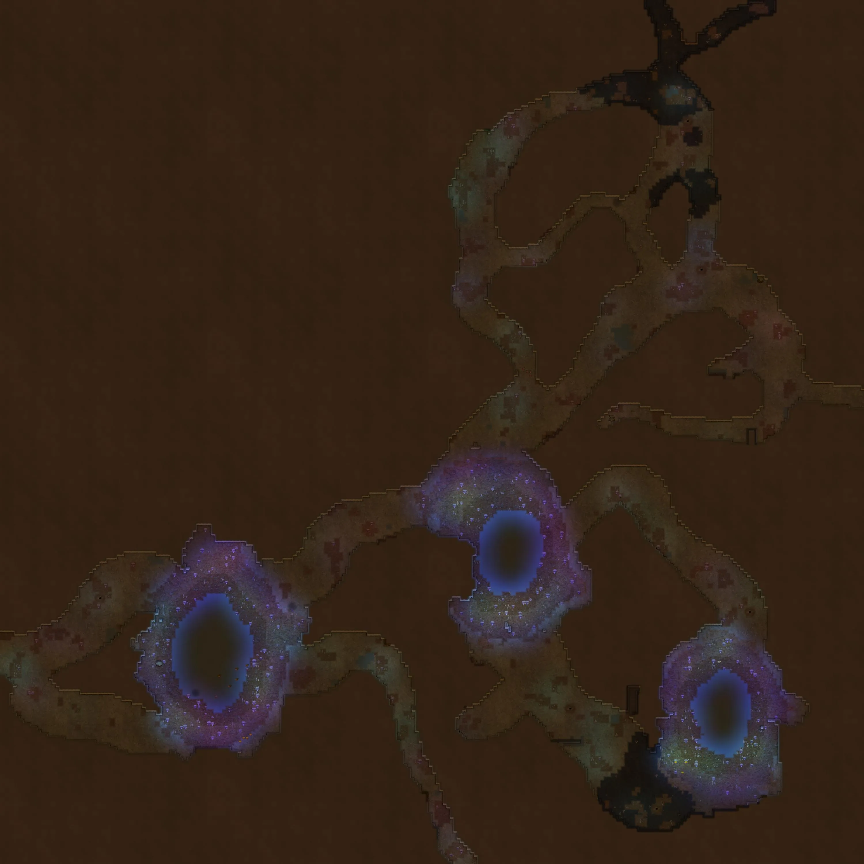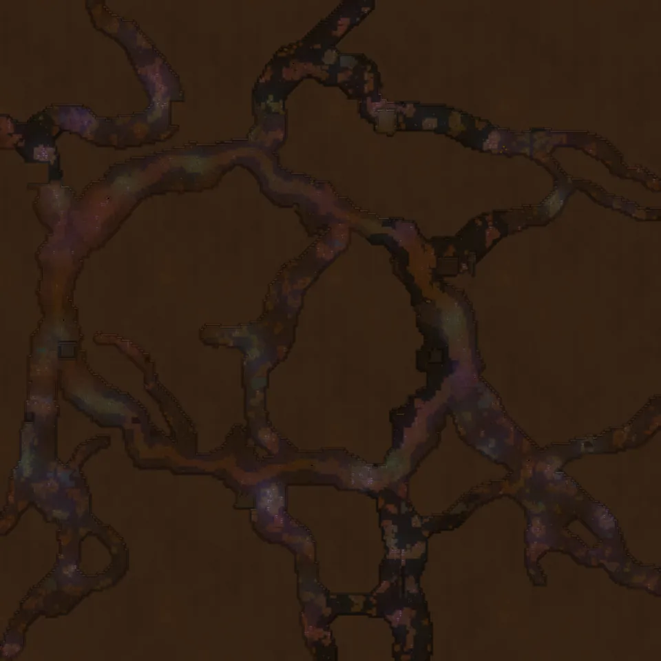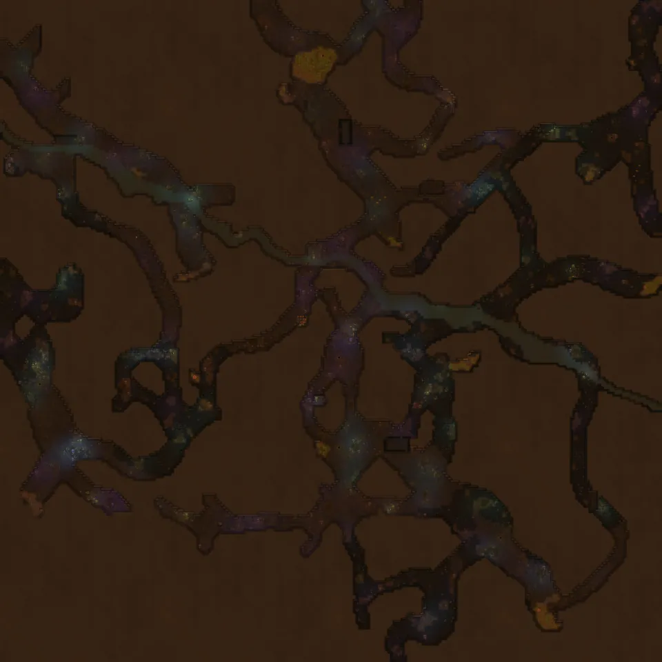 An underground cave system of many interconnected tunnels. These areas were mostly formed naturally due to plate tectonics or other geological activity. These tunnels are deep under a solid rock ceiling, so no sunlight will every reach here. Therefore plants are non-existent, instead various mushrooms inhabitate the caves, some of them even provide a little light for animals to live in this region.