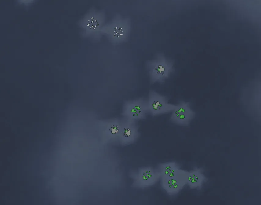 An archipelago of many skerries and smaller islands. There is not really much going on here. A few islands have some soil and a decent vegetation, other are just composed of sand or ice in the winter. Mostly small animals and birds live here to fit the cramped environment.