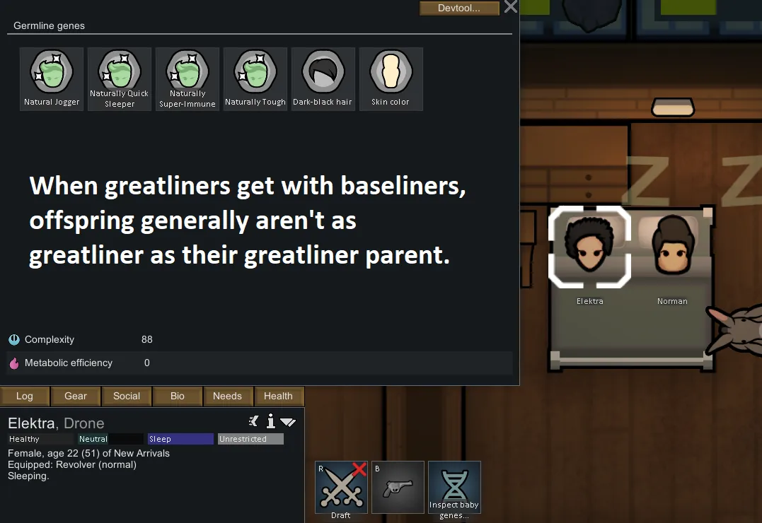 2. Using genes that force mental or personality traits, like kind or sanguine, feels like taking away a character's room to have and form their own personality.