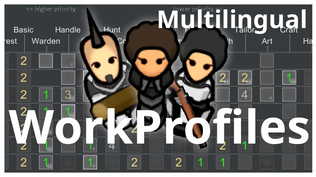 "Work Profiles" is a handy RimWorld mod that lets you create, save, and switch between work priority profiles for your colonists, simplifying colony management.