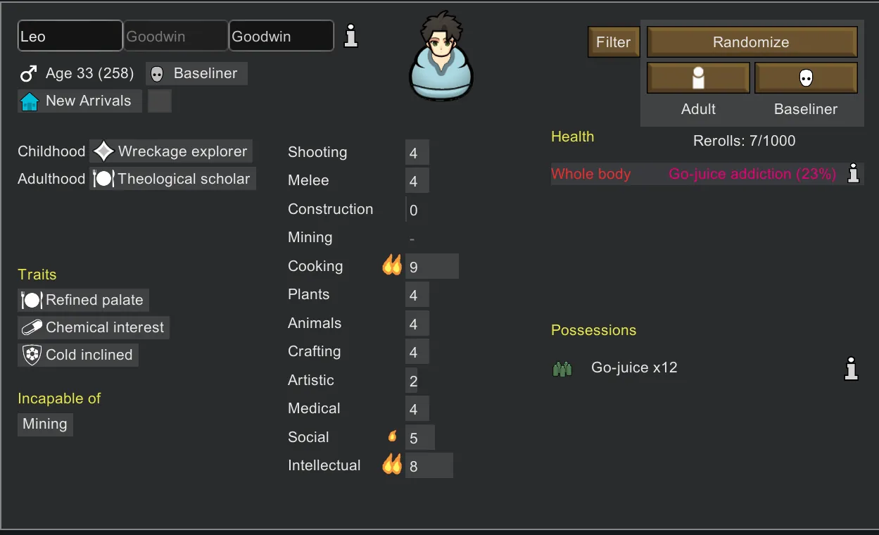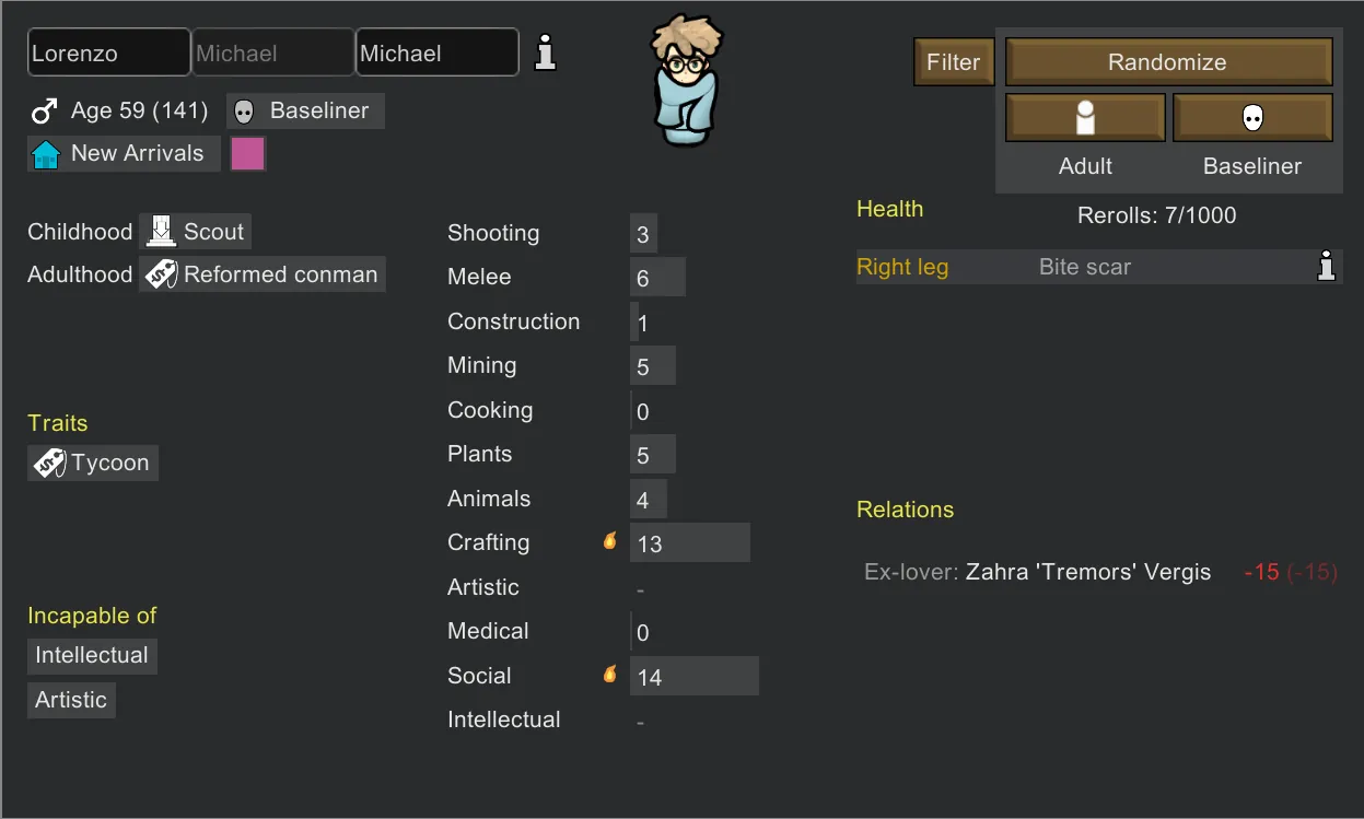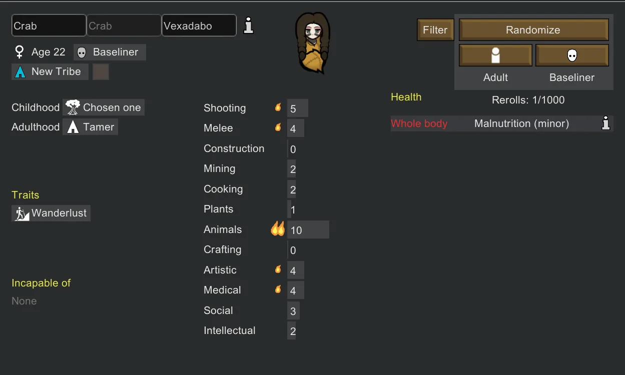 [*] Almost all backstories will have the "offworld" to generate pawns for crashlanded.