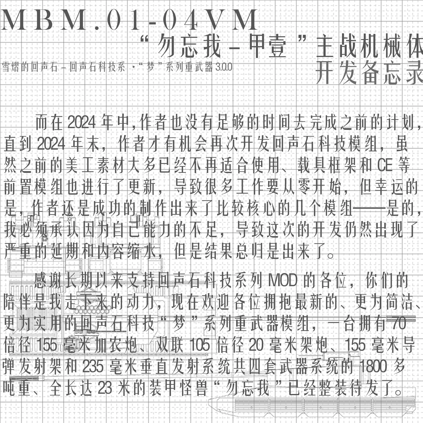 该模组内容十分简洁,仅有一个科技、一个装甲车辆,但是她的功能十分强大,这台1800多吨的战争机器可以用她的四套武器系统轻易毁掉任何可能打扰您快乐生活的敌人。