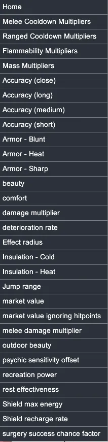 Also adds flammability, mass, ranged, and melee cooldown as factors that can be affected by quality.