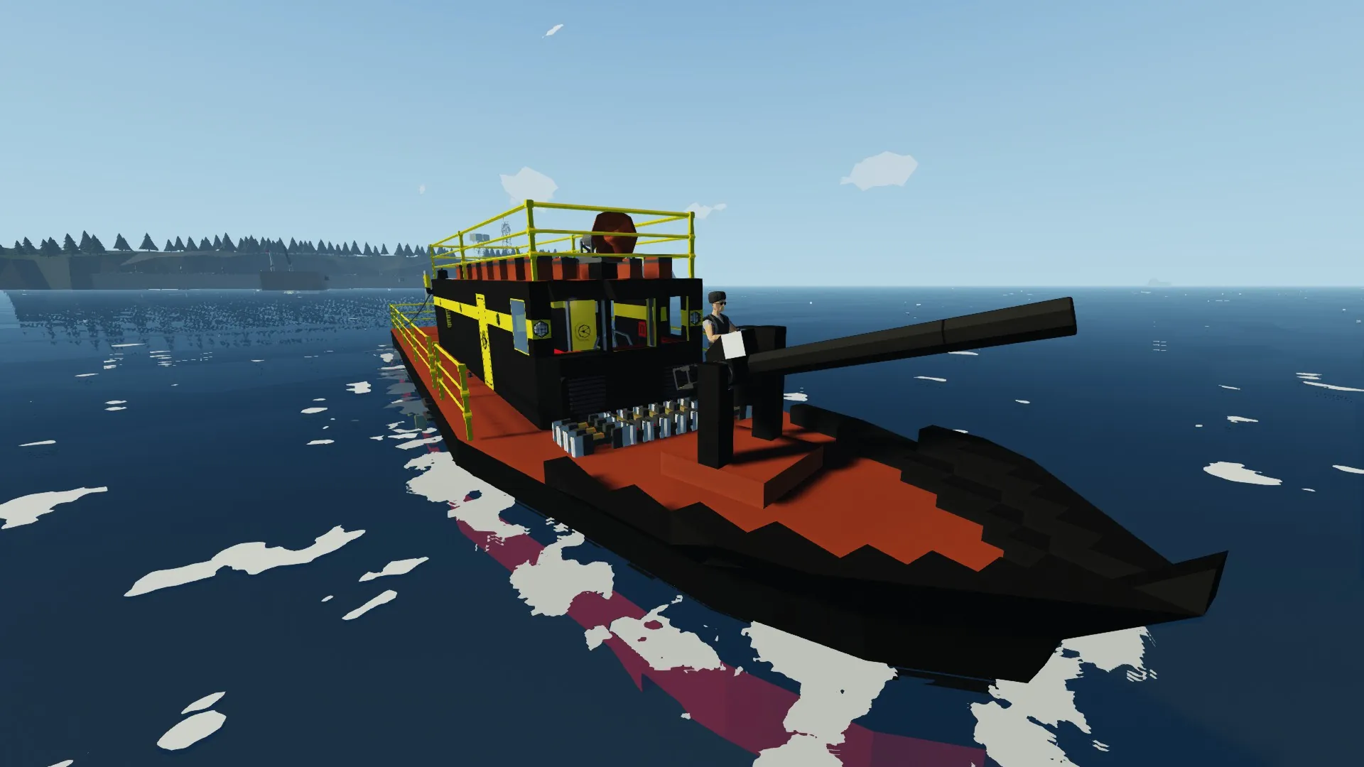 The first version was a small ferry with a few seats on top. I decided to turn it into a patrol boat with a gun on the front. It’s a bit unstable because it was supposed to be a smaller boat.