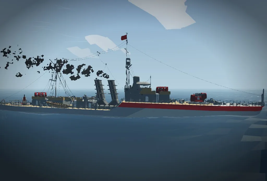 The Ikiryō is one of the most notable examples of the Seishin class. Unlike some sister ships that retained two 120 mm guns, the Ikiryō was equipped with a 120 mm naval gun on the bow and a mortar on the stern, a configuration that gave it greater versatility in coastal support missions. Its baptism of fire took place during the reconquest of Crescent Island, when it was assigned to support the landing of Redamuran troops against the forces of the Vauhgran Empire. In that operation, the Ikiryō used its mortar to suppress enemy fortifications and clear the way for the infantry, while the 120 mm gun provided covering fire against light ships and coastal artillery positions.