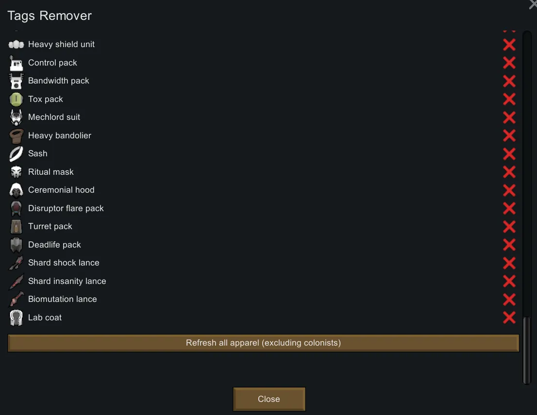 For existing NPCs, a one-click re-equipping function is also provided, which can refresh the clothing of all pawns except colonists.