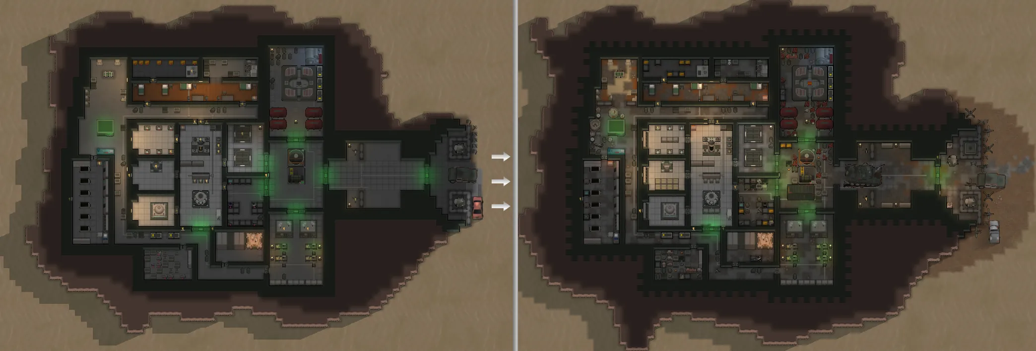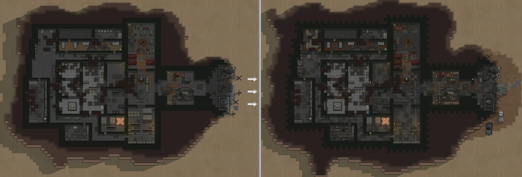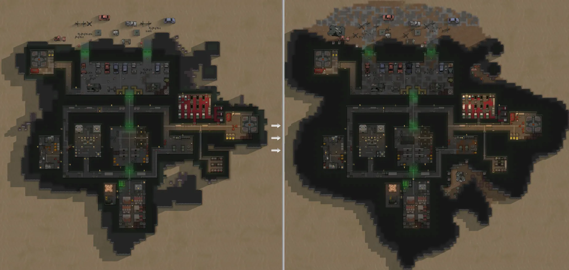 [*] Soil tiles have been added to the front entrance area of the vault, to help indicate the main entrance, and keep the entrance clear.