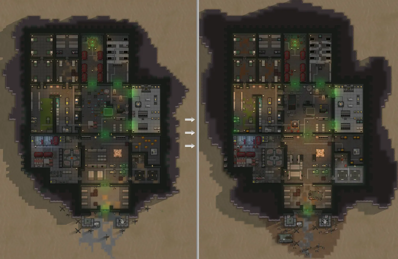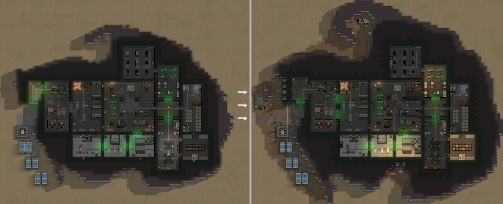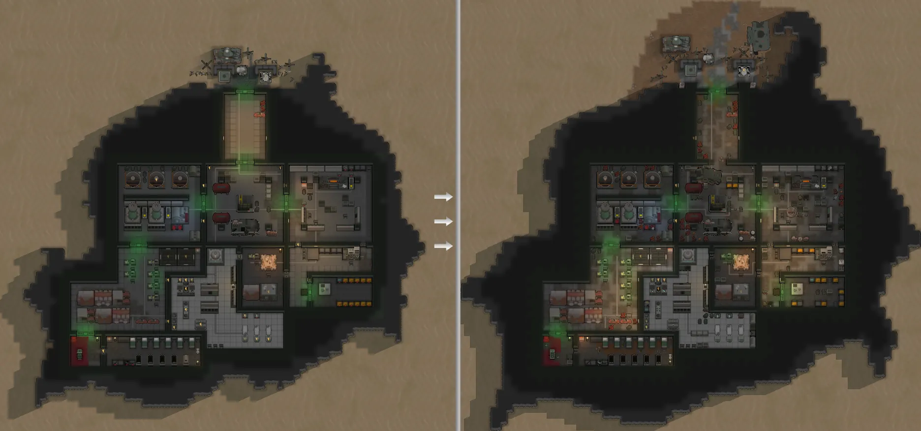 [*] Soil tiles have been added to the front entrance area of the vault, to help indicate the main entrance, and keep the entrance clear.