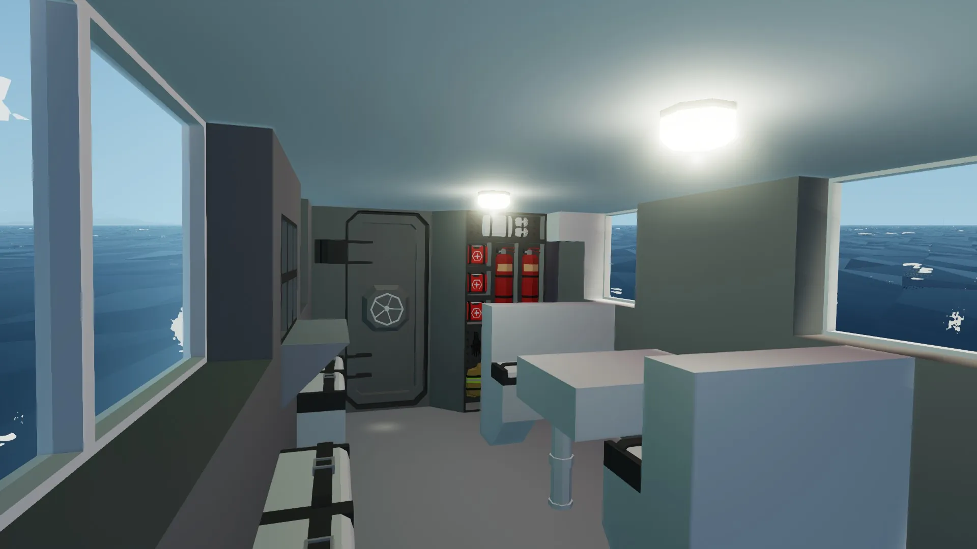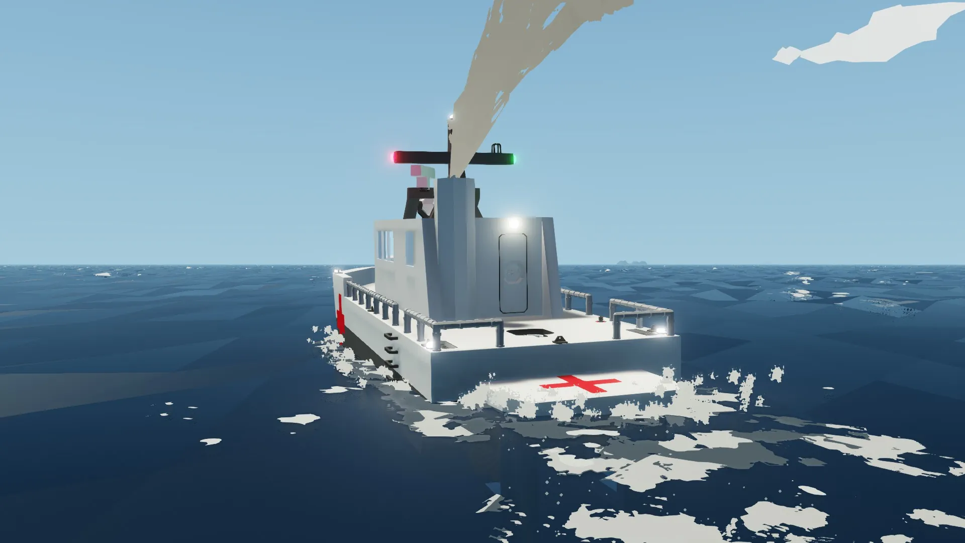 The AZUL Rescue is the answer for the Stormworks Coast Guard to what if we needed a deepwater rescue craft for rough conditions and have a long range to reach said waters. While also having a speed just as fast as the Master Rescue. The Azul met all of these criteria. Built in 1986 it was a very good intermediate craft for long distance rescues in deepwater while having shelter for rough conditions and thanks to its two 24Cylinder engines it could reach a cruising speed of 42MPH, and in high gear hit 57MPH. Serving a long career it has made many famous rescues under the S.C.G. During the famous 1991 rig disaster she was unloading rescue personnel at the base of the rig when a crane broke from the top and came crashing down onto the ship, sinking immediately and losing all personnel and crew.