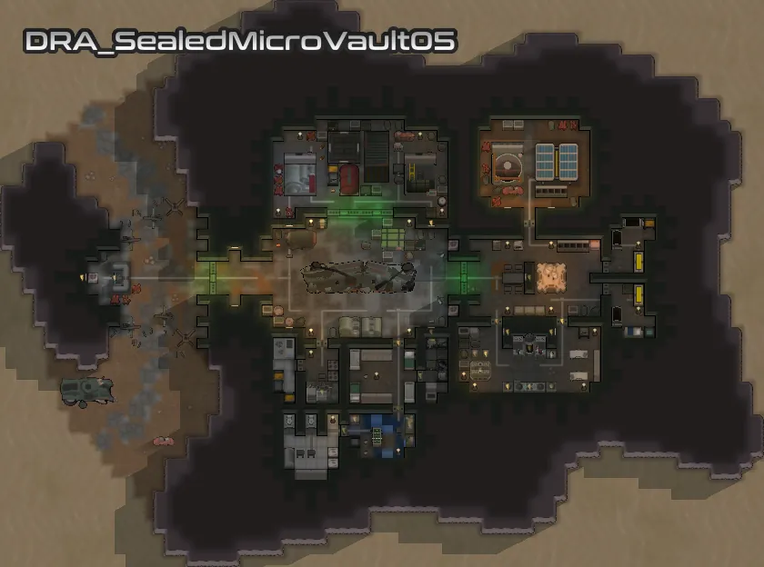Each of the added vaults vary in size and complexity, but they all stick to objects available in the base game, [url=https://steamcommunity.com/workshop/filedetails/?id=2654846754][b]VFEA[/b][/url] and [url=https://store.steampowered.com/app/1392840/RimWorld__Ideology/][b]Ideology[/b][/url]. I have put extra effort into making sure that your starting pawn can get access to food, and that all the vaults feature the essentials needed for a functioning vault, and generally feel reasonable.