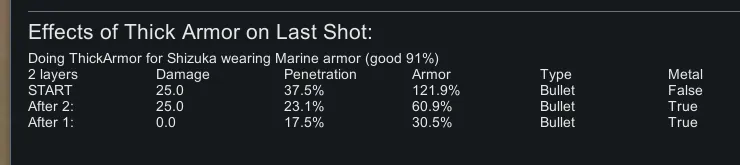 This mod simply treats multi-layer armor (like Marine Armor, which occupies middle + outer layer) as two separate layers of armor, so its armor applies twice to every attack. A 50%(configurable) rating multiplier is applied to the second layer, and that seems about right for a ~40% buff.