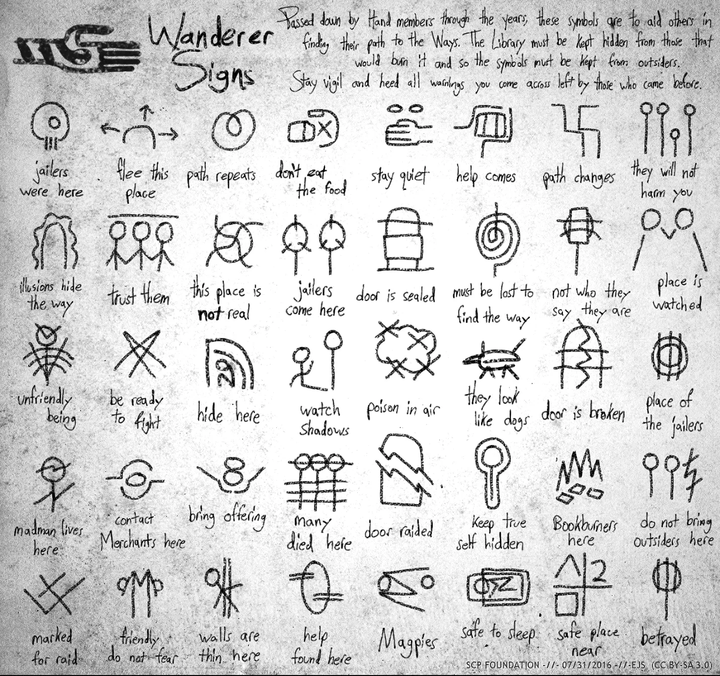 (English: [url=https://steamcommunity.com/linkfilter/?u=https%3A%2F%2Fscp-wiki.wikidot.com%2Fwanderer-symbols]https://scp-wiki.wikidot.com/wanderer-symbols[/url] ,中文: [url=https://steamcommunity.com/linkfilter/?u=https%3A%2F%2Fscp-wiki-cn.wikidot.com%2Fwanderer-symbols]https://scp-wiki-cn.wikidot.com/wanderer-symbols[/url] )
