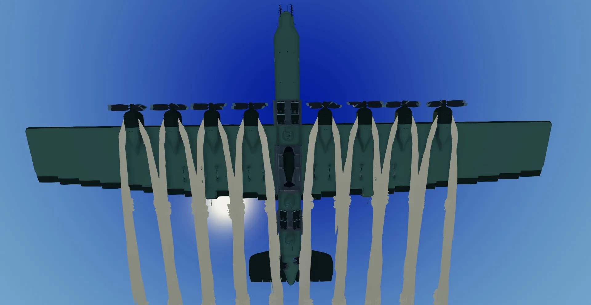 The Me 824 is a fictional bomber with 8 engine´s. It carrys 20 medium warhead bombs and a nuke. It has 16 defensive guns. It also has a primitive radar with 8km rang and it uses 10 takeoff bosters.