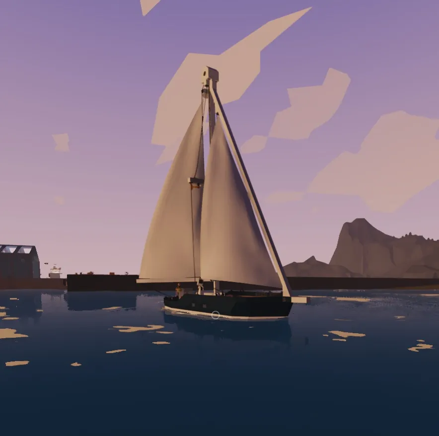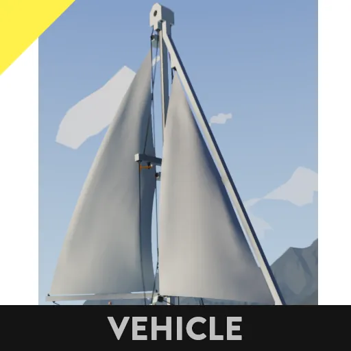 Small sailing sloop perfect for solo users. Sails rigged for winches and allow an enjoyable experience, all controls collected onto the dash so the whole ship can be trimmed from the helm, including raising and lowering sails.