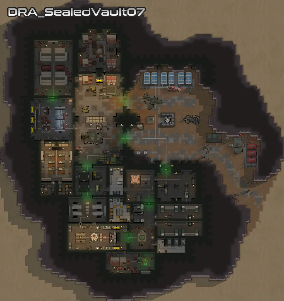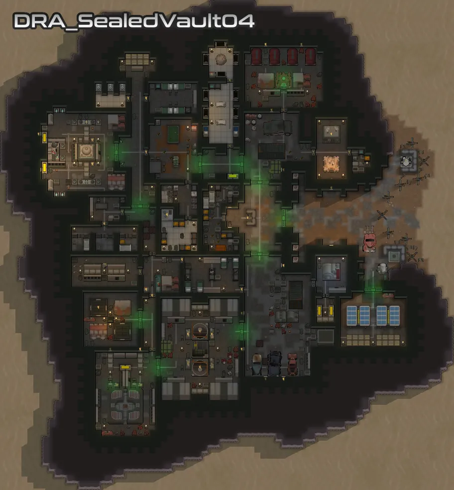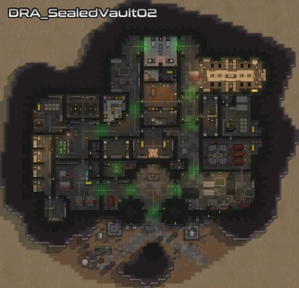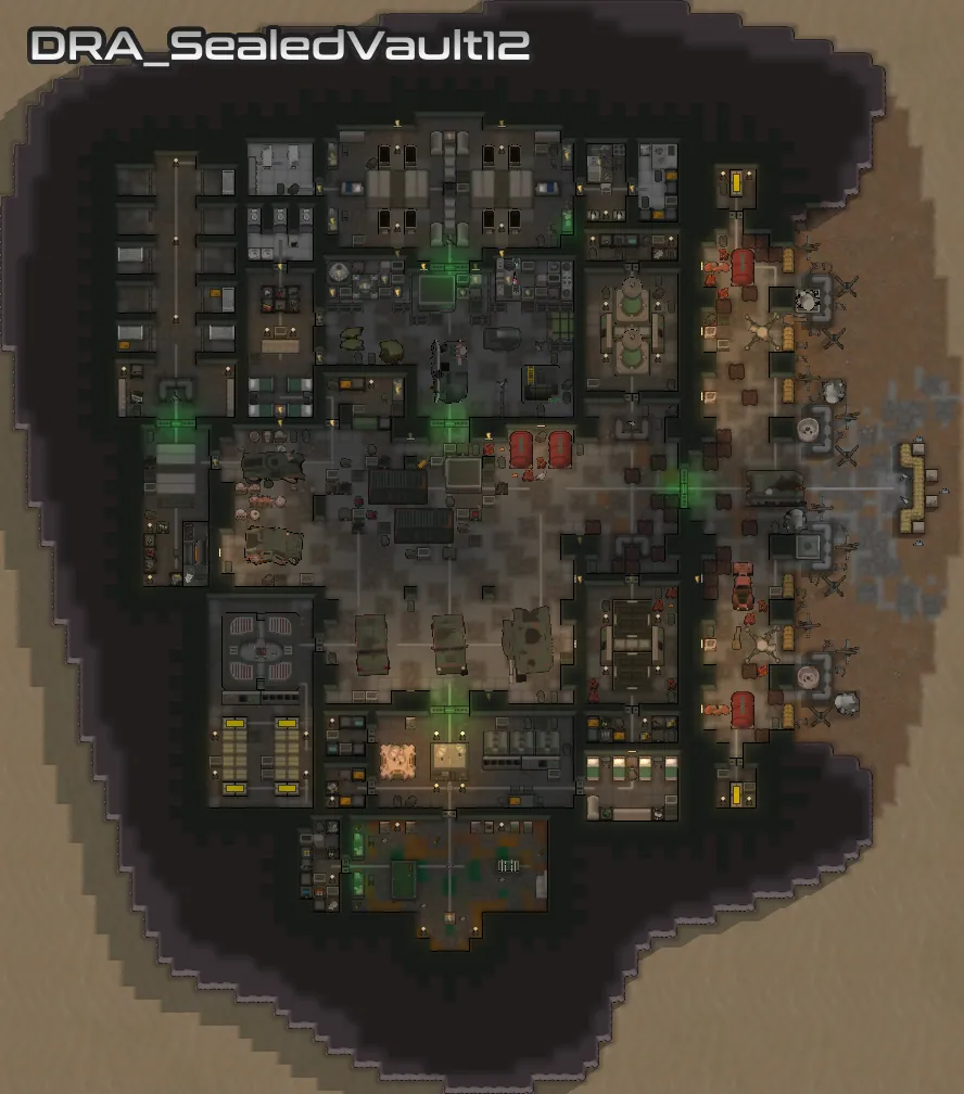 Each of the added vaults vary in size and complexity, but they all stick to objects available in the base game, [url=https://steamcommunity.com/workshop/filedetails/?id=2654846754][b]VFEA[/b][/url] and [url=https://store.steampowered.com/app/1392840/RimWorld__Ideology/][b]Ideology[/b][/url]. I have put extra effort into making sure that your starting pawn can get access to food, and that all the vaults feature the essentials needed for a functioning vault, and generally feel reasonable.