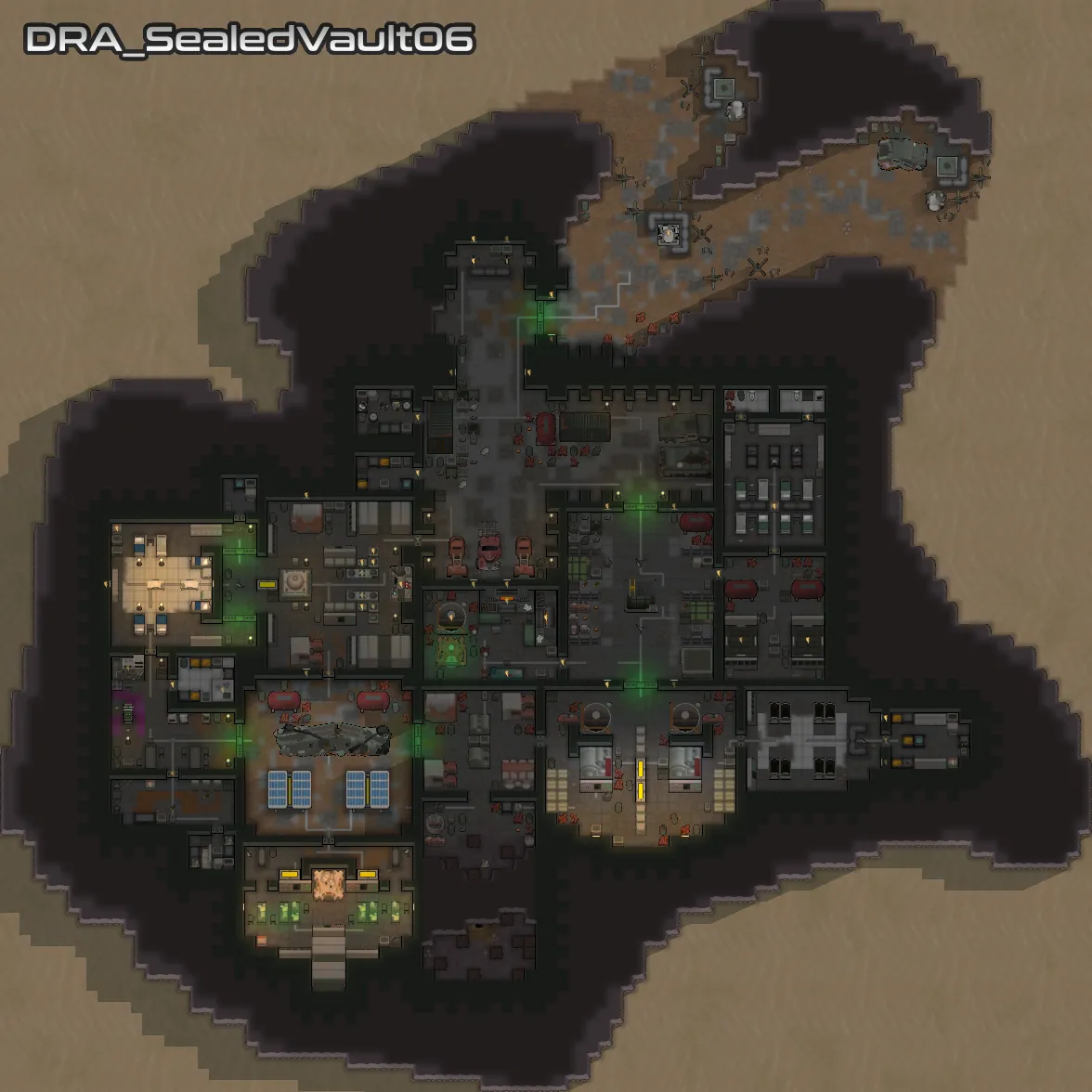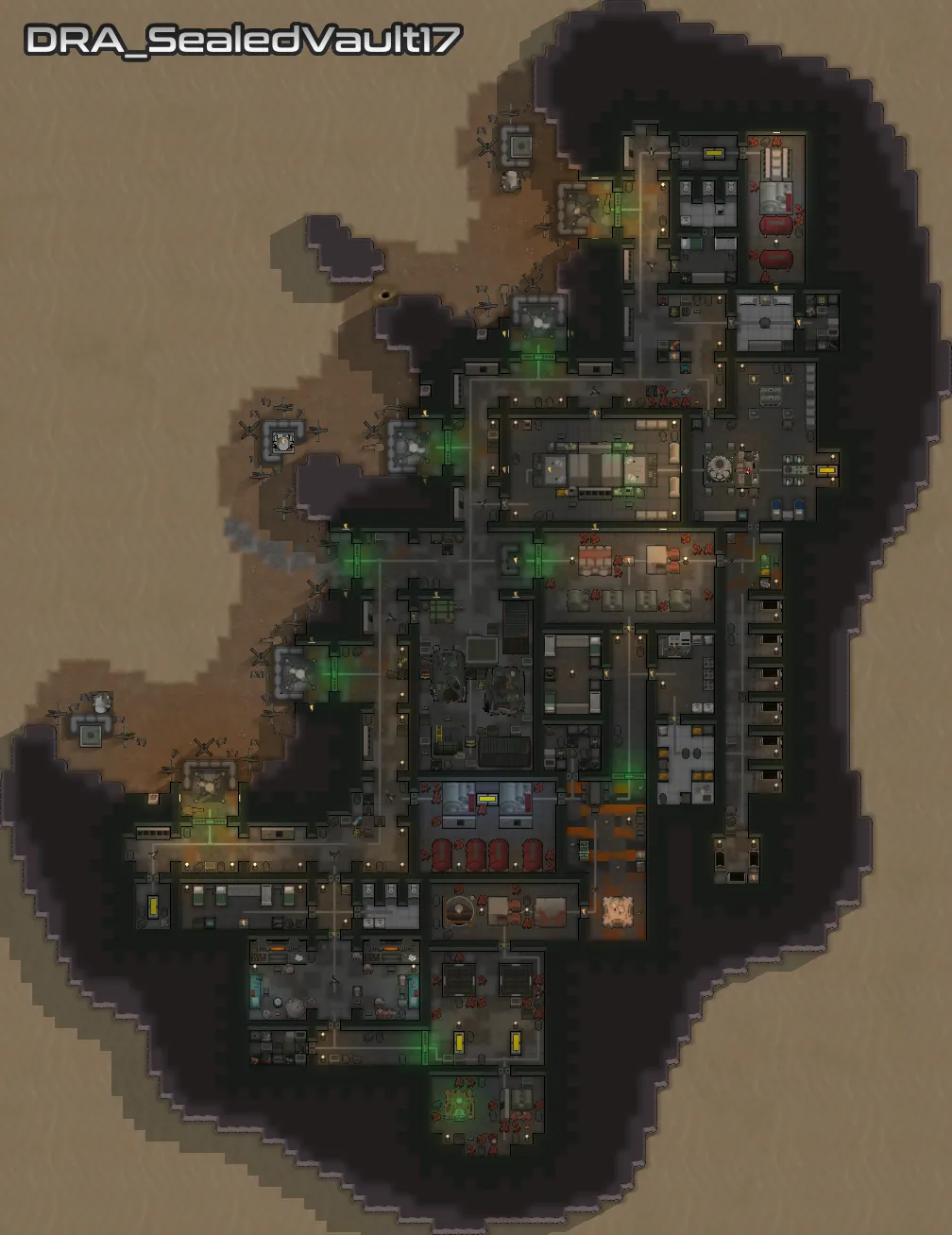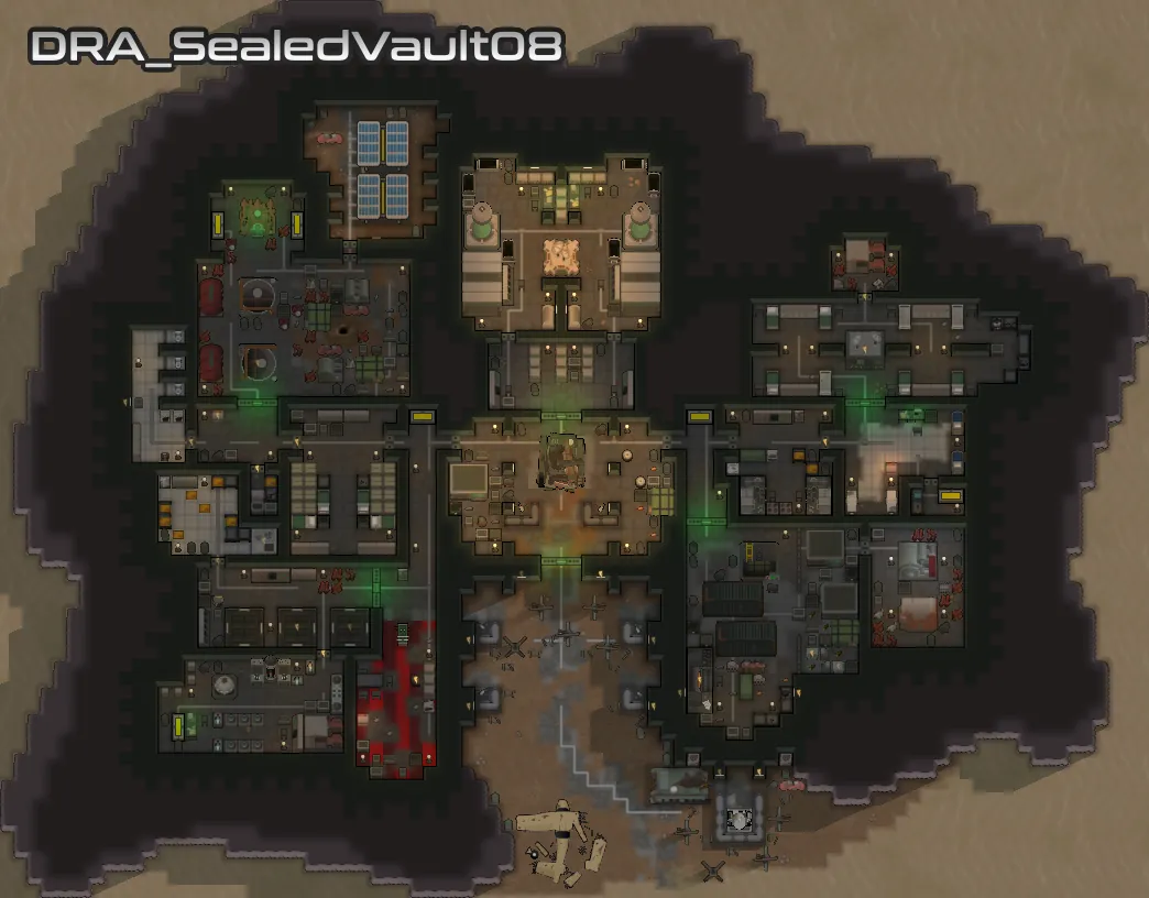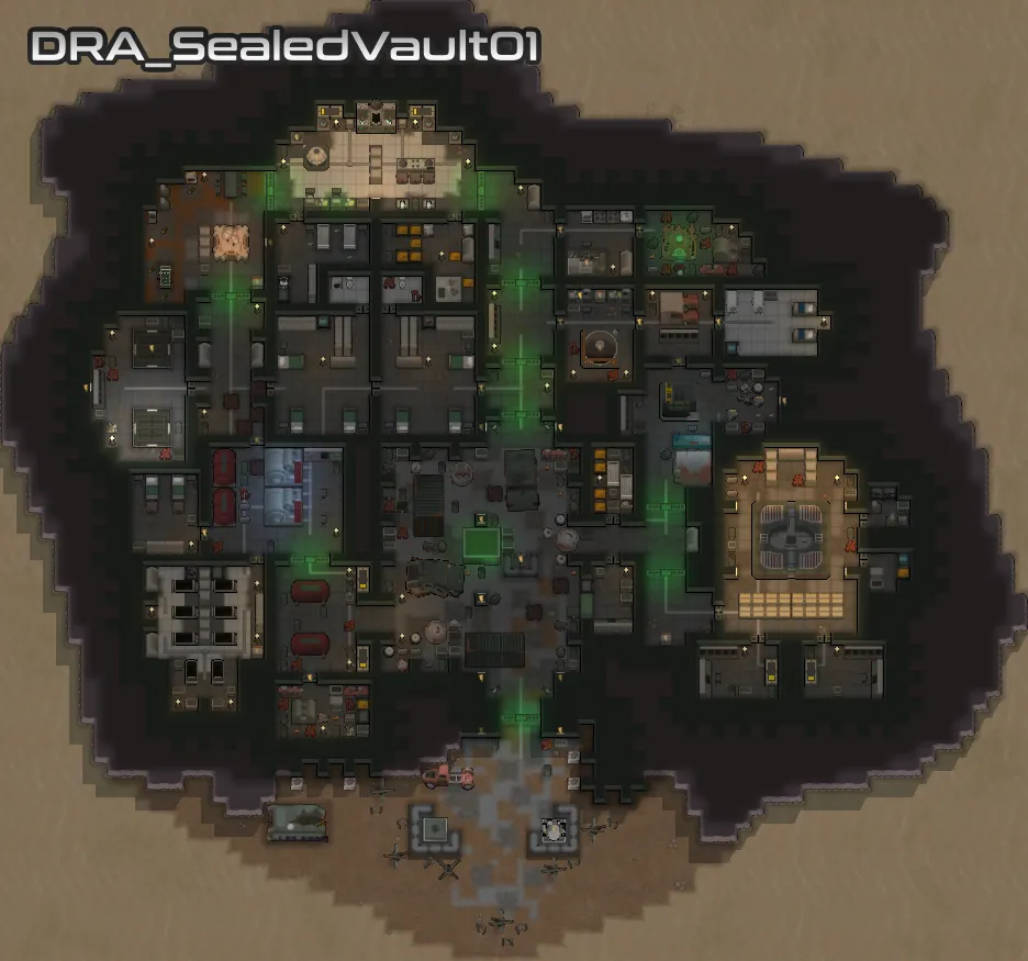 Each of the added vaults vary in size and complexity, but they all stick to objects available in the base game, [url=https://steamcommunity.com/workshop/filedetails/?id=2654846754][b]VFEA[/b][/url] and [url=https://store.steampowered.com/app/1392840/RimWorld__Ideology/][b]Ideology[/b][/url]. I have put extra effort into making sure that your starting pawn can get access to food, and that all the vaults feature the essentials needed for a functioning vault, and generally feel reasonable.