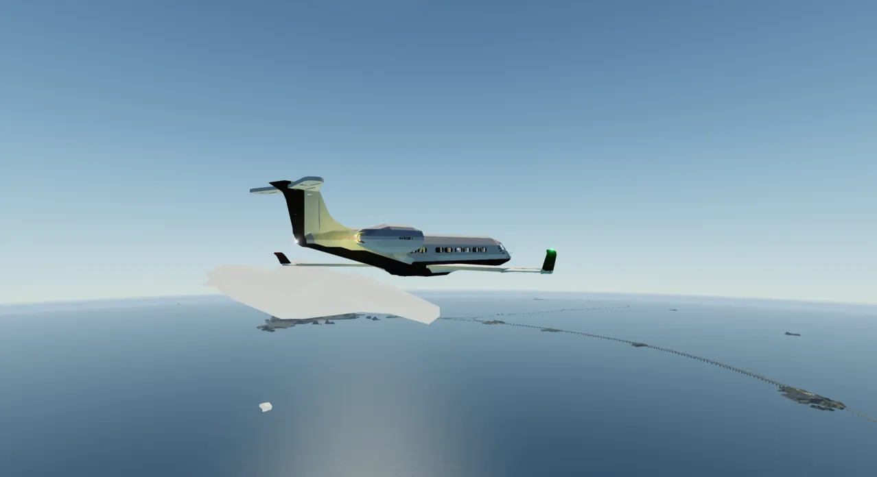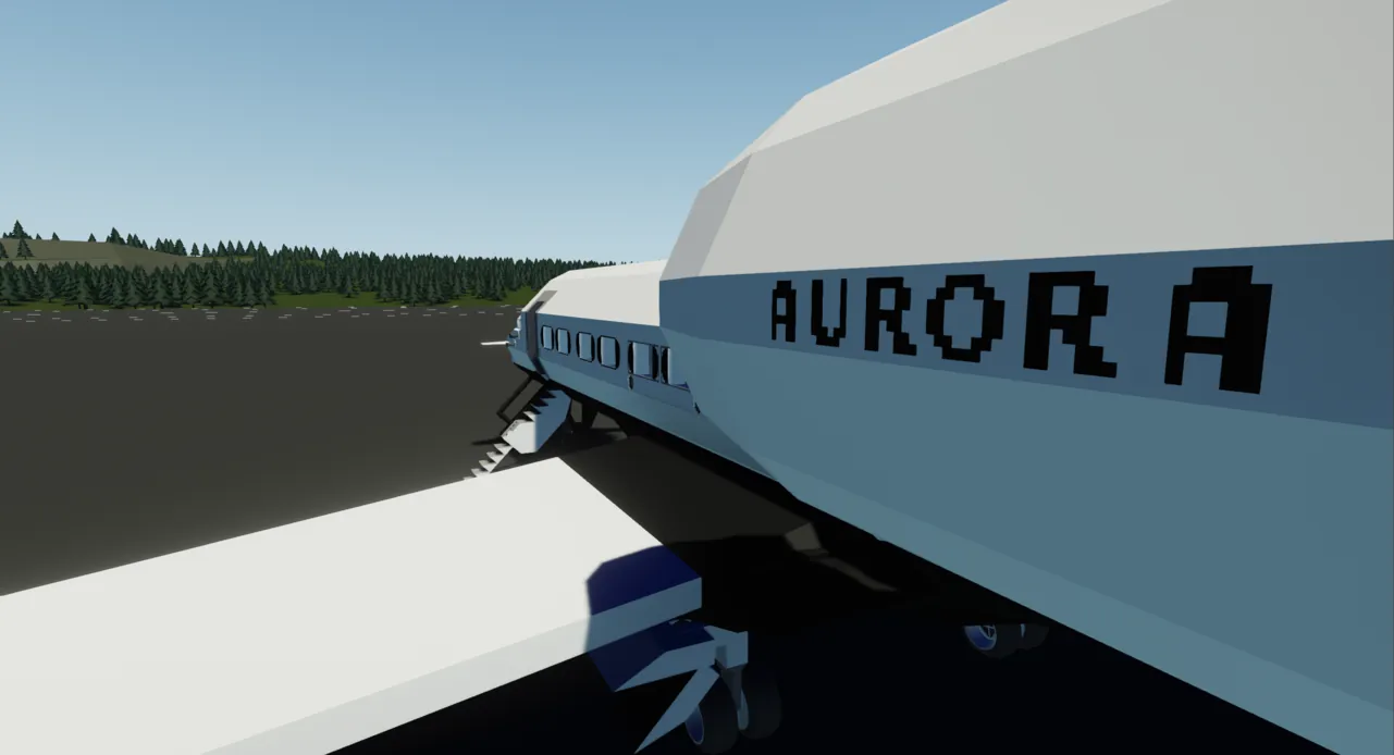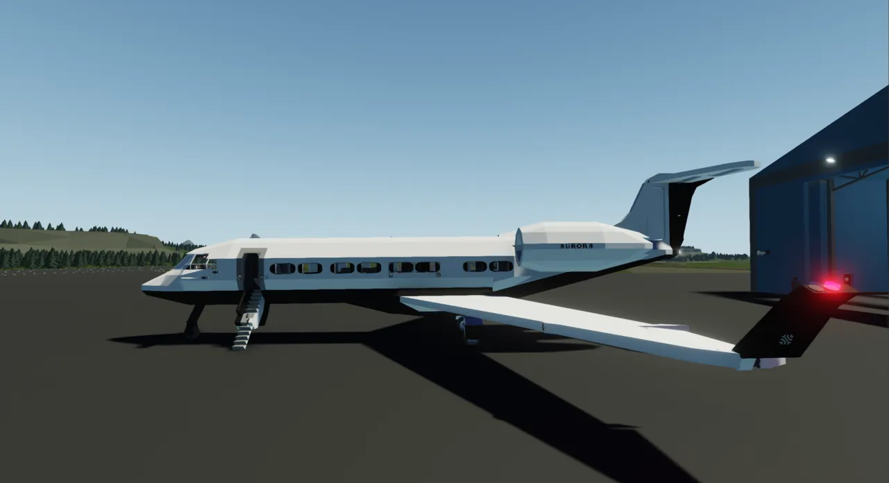 The exterior design of the Aurora is modelled after a gulfstream g450. The paint scheme is a white aircraft paint with black underbelly that goes towards the top of the stabilizer and gives the aircraft a luxurious and sporty look.