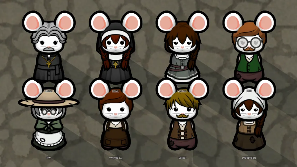 (Keywords: agriculture, agricultural, alignment, allegiance, animal, anthro, apiary, apparel, backpack, bandit, beehive, beekeeping, beeswax, brewing, brigand, cavy, charcoal, cheese, church, crops, dance, factions, farm, fermenting, festival, feudal, firecracker, flower, furniture, furry, guinea pig, gunpowder, honey, kingdom, knight, lager, mead, medieval, mine, mining, mouse, musket, nitrary, nomad, nun, nuts, pike, priest, race, rat, rebel, refugee, revolutionary, ritual, rodent, rodentfolk, rodentkind, root cellar, saltpeter, scenario, settler, sulfur, vent, wall, wattle and daub, weapon, wheat, wicker, windmill, workbench, worship)