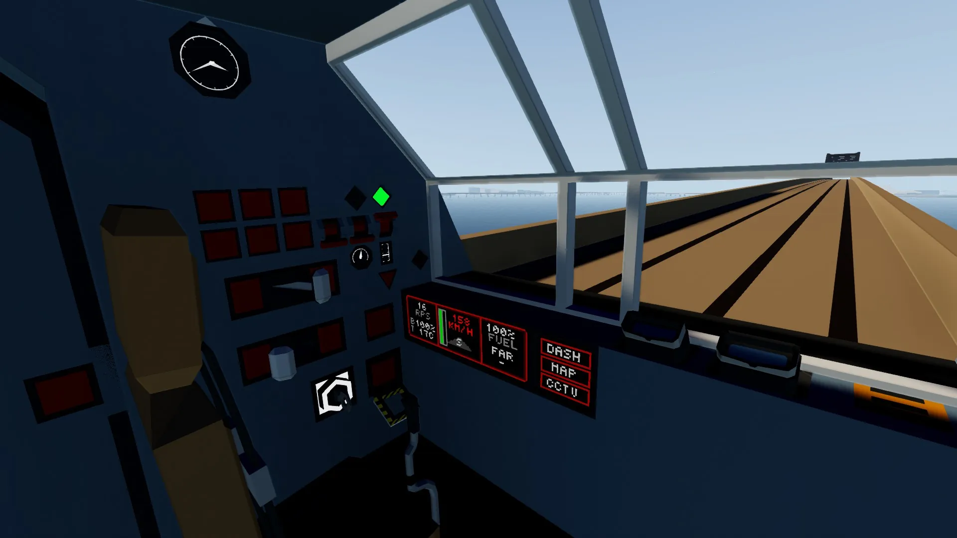 Behind you are shunting controls, enable heaters, turn on lights in both of the cockpits, and a trainsync wireless or wired system.