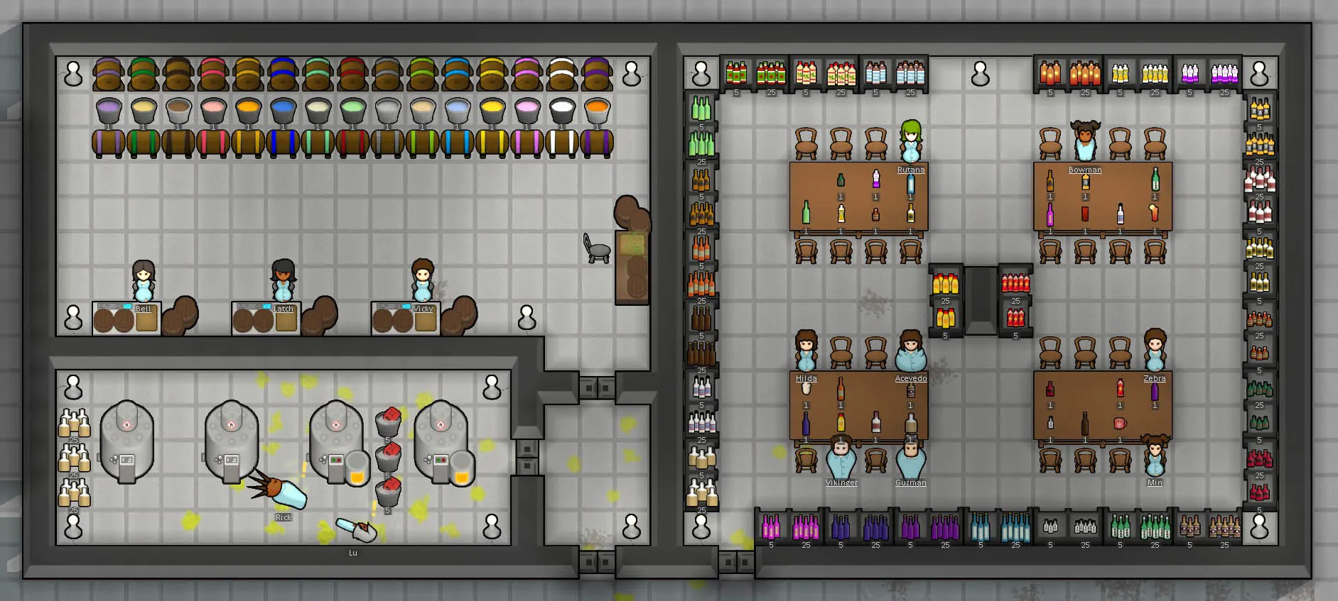 [b]Fermented Drinks[/b] Similar to Beer from the vanilla game, these drinks are first processed at a brewery and then fermented for a number of days in their own casks. Relatively low on alcohol content, they’re also better for drinking - as many of them don’t have a good value-to-weight/time-made ratio. Except wine. Wine sells great.