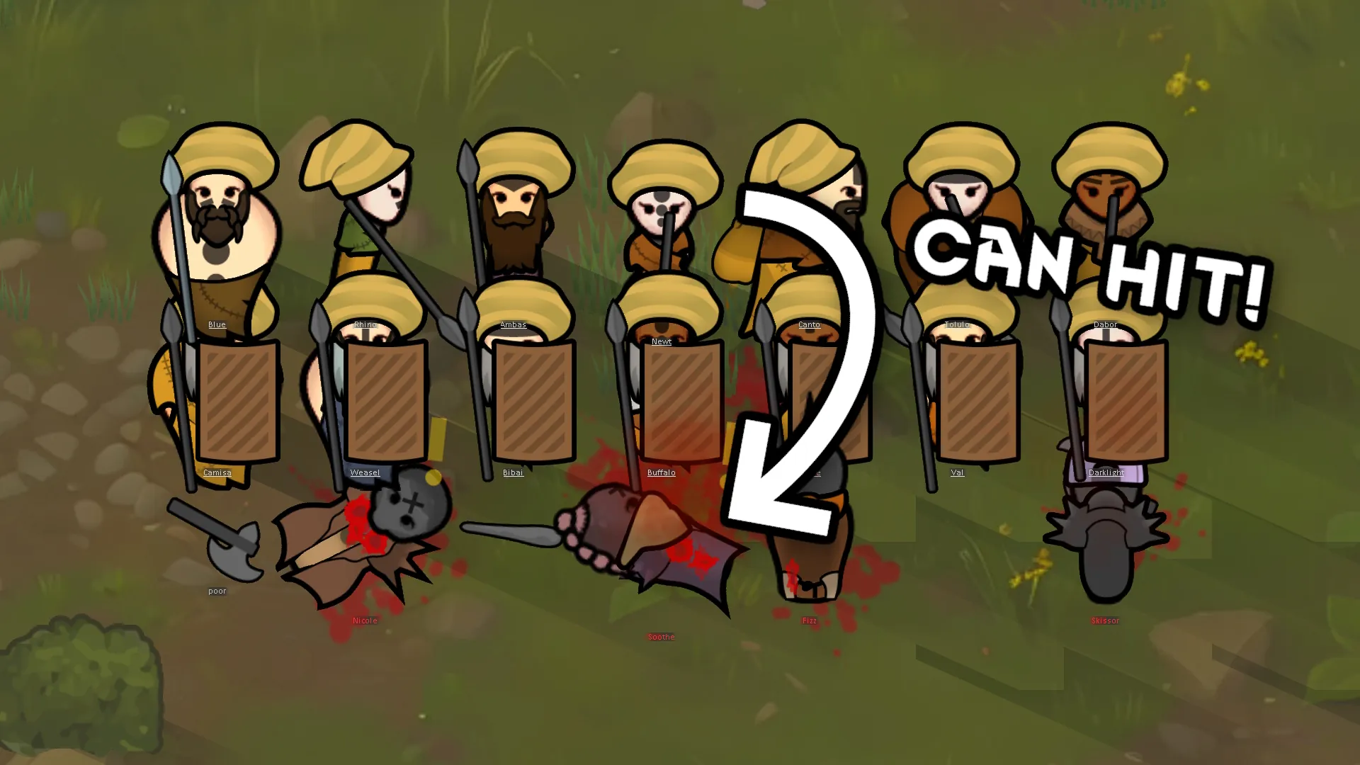 Yes, that was a thing many armies did in real life. Phalangites, which made the core of the Macedonian phalanx, had pikes that could reach multiple meters in length. This allowed them to strike over multiple ranks of soldiers. With regular spears and such, the ones we have in Rimworld, you could still reliably thrust over a rank of shieldsmen.