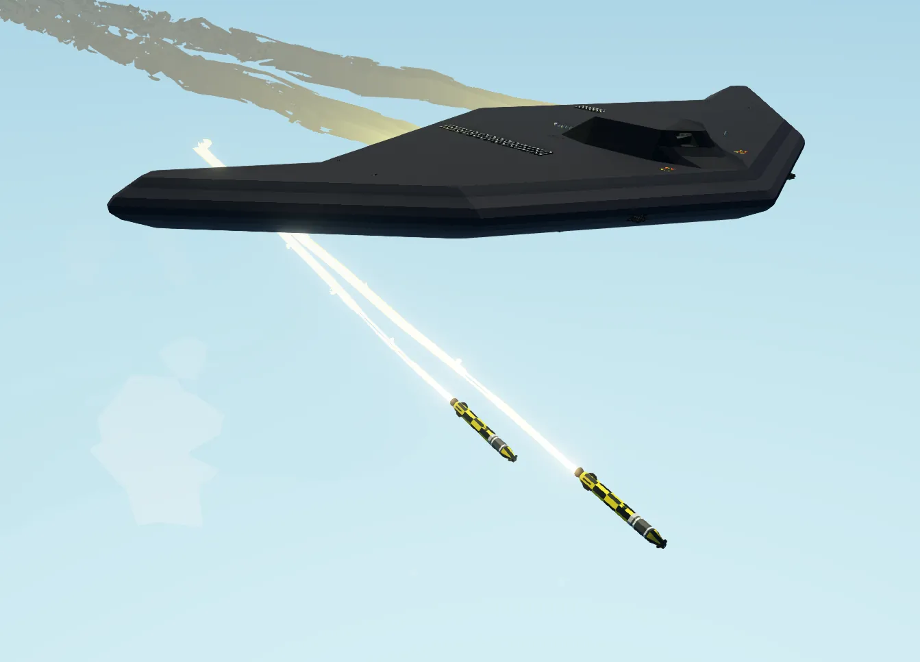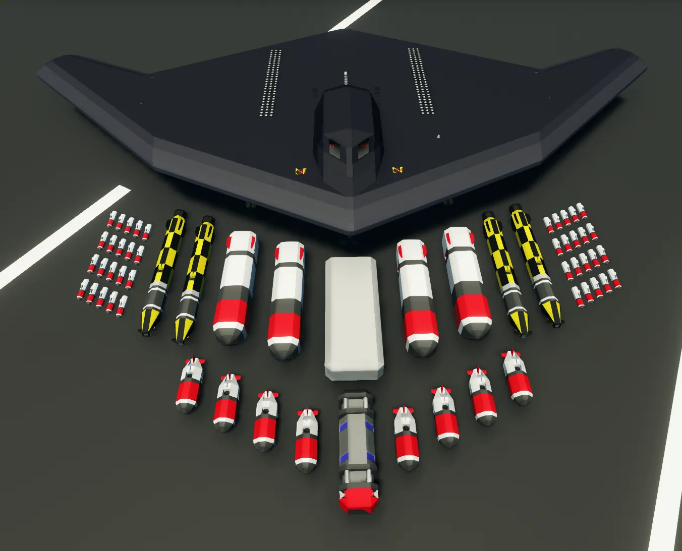 The XB-3A bomber is a long range strike aircraft designed by NCorp with a 3 person crew. It carries a large payload of various bombs and weapons for attacking targets. It is also able to connect with other craft in various ways.