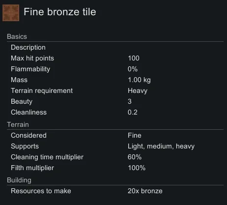 - [b]Stone Floors[/b] now have an [b]80%[/b] multiplier (previously [b]100%[/b]), making pawns and mechs clean 20% faster.