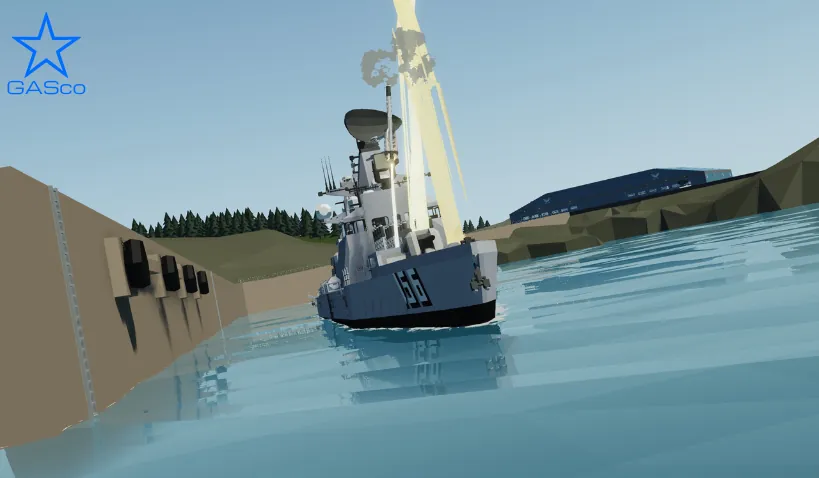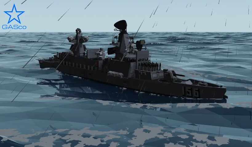 As an anti air(specifically missiles) frigate, it is meant to shoot down missiles from medium range instead of close range as missiles are quite hard to intercept once they get too close. And unlike it's ground interceptor cousin, it's medium range surface to air missiles can multi target. Not only that, it has 2 modes of radars as well: TWS and Hard lock. Despite the radar modes, Hard Lock has the longer range(20KM vs 13.3KM for TWS Mode). Although it can also shoot down aircraft but not as much effective as it's ground and air platform counterparts. However it has other targeting modes such as laser targeting pod, firing control pod, datalink and radio. The frigate has 2 datalinks as well though the other datalink is for identifying older vehicles while the main one is it's primary datalink and IFF.