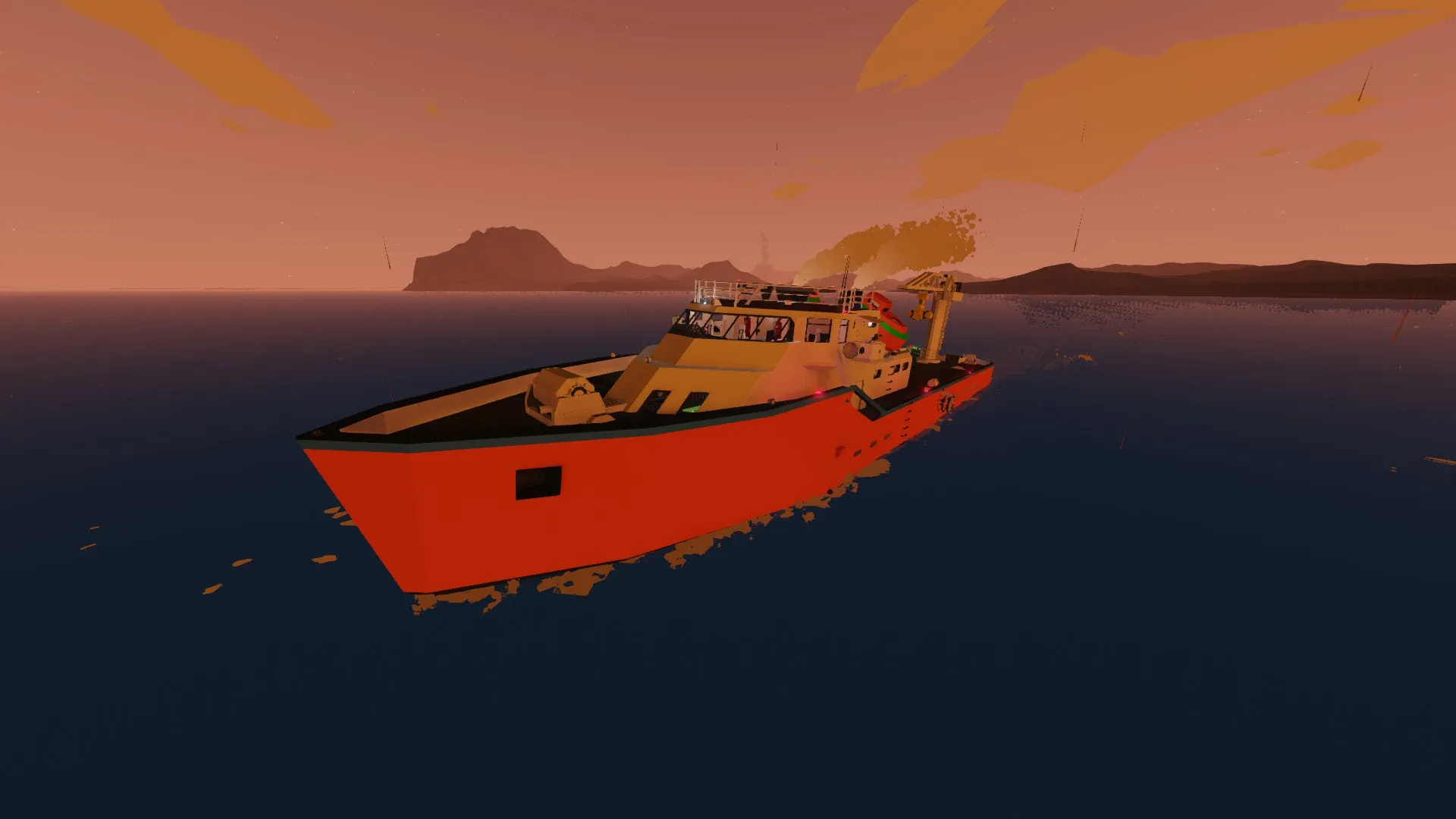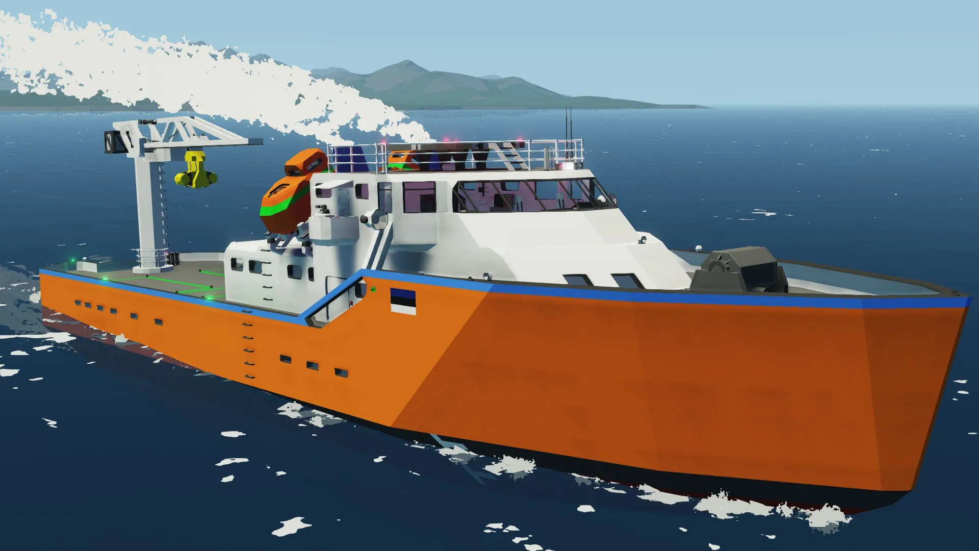 Max Speed 72km/h Container Area Two LobsterPots. Water Guns. Powered by 2x10 Steam pistons Engine and One Large Electromotor. Max Range - Infinite